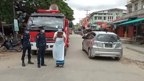 မိုင်းဖြတ်မြို့နယ်၌ ကိုဗစ်-၁၉ ရောဂါ ကြိုတင်ကာကွယ်ရေး ပြည်သူများသို့ အသံချဲ့စက်ဖြင့် အသိပေးနှိုးဆော်