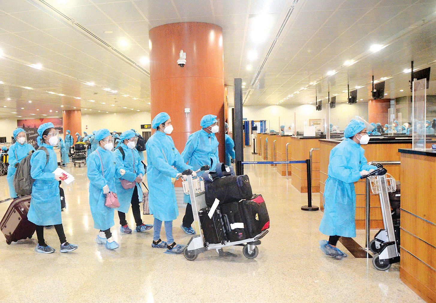၎င်းတို့ ရန်ကုန်အပြည်ပြည် ဆိုင်ရာလေဆိပ်သို့ ရောက်ရှိချိန်တွင် လူဝင်မှုကြီးကြပ်ရေး၊ ကျန်းမာရေး စိစစ်ရေး၊ သီးသန့်စီစဉ်ပေးသည့် နေရာ/ သတ်မှတ်ဟိုတယ်များ၌ အသွားအလာ ကန့်သတ်မှု ခုနစ်ရက်နှင့် နေအိမ်တွင် အသွားအလာ ကန့်သတ်မှု ခုနစ်ရက် နေထိုင်စေရေးတို့ကို အလုပ်သမား၊ လူဝင်မှုကြီးကြပ်ရေးနှင့် ပြည်သူ့ အင်အားဝန်ကြီးဌာန၊ ကျန်းမာရေးနှင့် အားကစားဝန်ကြီးဌာနနှင့် ရန်ကုန် တိုင်းဒေသကြီး အစိုးရအဖွဲ့တို့က သက်ဆိုင်ရာ အခန်းကဏ္ဍအလိုက် တာဝန်ယူ ဆောင်ရွက်ပေးကြသည်။