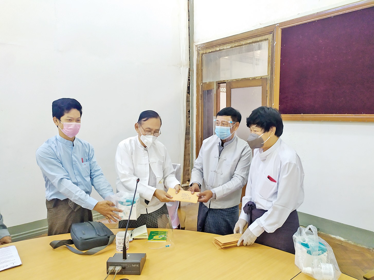 အဆိုပါ ကန်တော့ပွဲကို မြန်မာနိုင်ငံ အားကစားမီဒီယာများ အဖွဲ့ချုပ် ဒုတိယဥက္ကဋ္ဌ(၂) ဦးမာဂျေ၊ အတွင်းရေးမှူးဦးဖေဒီ၊ တွဲဖက်အတွင်းရေးမှူး(၃) ဦးမြင့်ကြည်တို့ ဦးဆောင်၍ ကန်တော့ခံ အားကစားကလောင်ရှင်ကြီးများဖြစ်ကြသော ဦးစိုးဝင်း (တက္ကသိုလ်စိုးဝင်း)၊ ဦးစိုးမြင့်(စိုးမှူး)၊ ဦးတင်အောင်(ဂိုးတင်အောင်)၊ ဦးကျော့မောင်(ကျော့မောင်-မင်္ဂလာ တောင် ညွန့်)၊ ဦးမြင့်ဆွေ(မြင့်ဆွေမြင့်)၊ ဦးကျော်စိန်သန်း(တက္ကသိုလ် ကျော်စိန်သန်း)တို့အား ကန်တော့ငွေနှင့် ကိုဗစ်- ၁၉ ကာကွယ်ရေးပစ္စည်းများ လှူဒါန်း ပေးသည်။