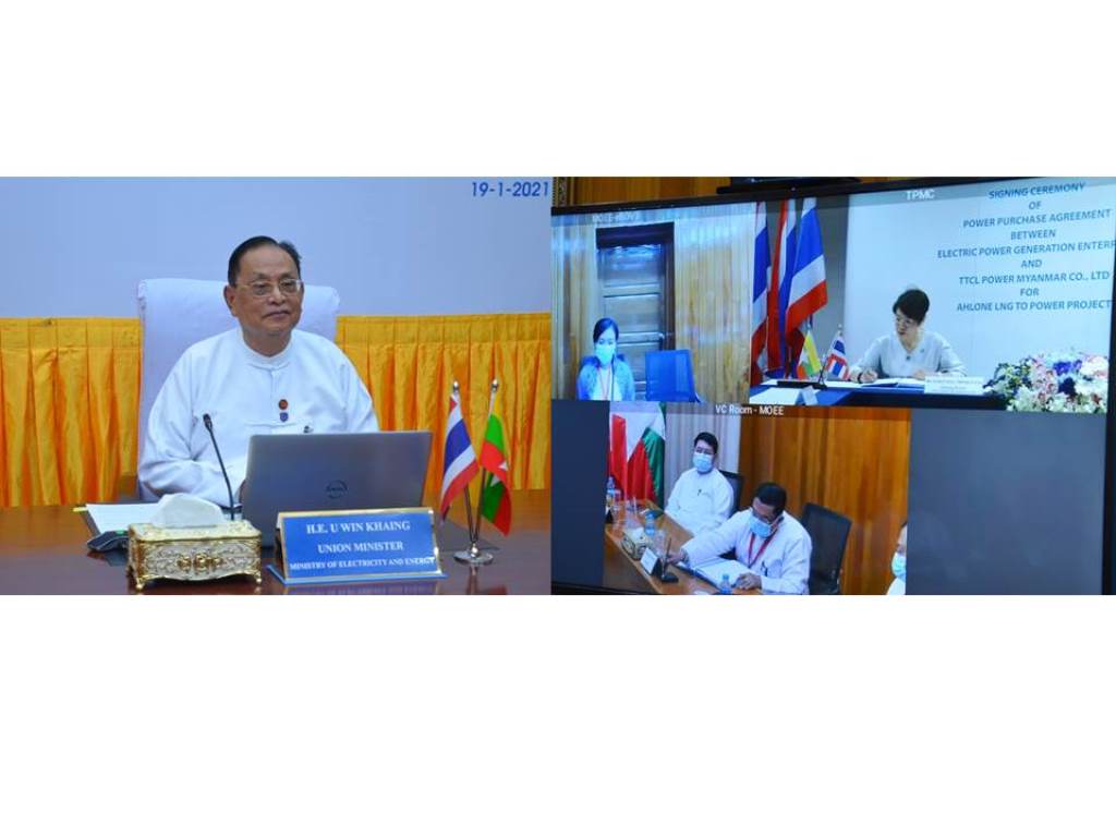 ယင်းနောက် လျှပ်စစ်နှင့်စွမ်းအင်ဝန်ကြီးဌာန လျှပ်စစ်ဓာတ်အားထုတ်လုပ်ရေး လုပ်ငန်း၊ ဦးဆောင် ညွှန်ကြားရေးမှူး ဦးသန်းနိုင်ဦးနှင့် TTCL Power Myanmar Co.,Ltd. မှ Managing Director Ms. Suratana Trinratana တို့က Power Purchase Agreement (PPA) စာချုပ်အား လက်မှတ်ရေး ထိုးခဲ့ကြကြောင်း သိရသည်။