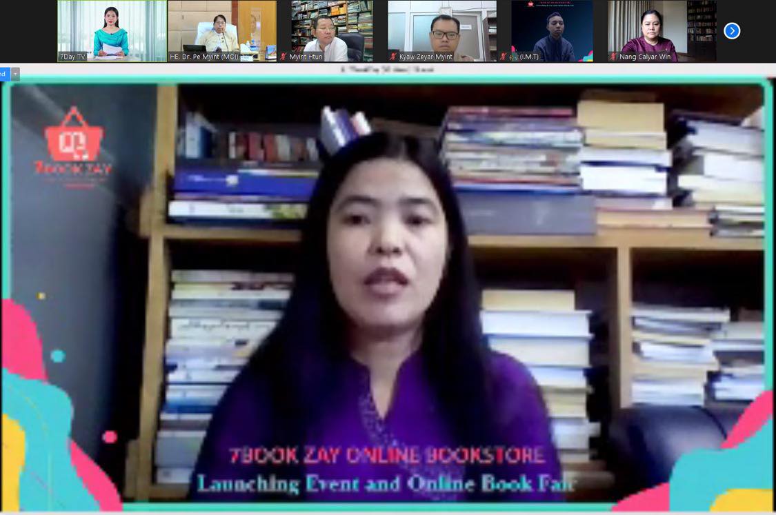 စာပေထုတ်ဝေဖြန့်ချိရေးကဏ္ဍအား ဒီဂျစ်တယ်စီးပွားရေး လုပ်ငန်းသစ်တစ်ခုအဖြစ် ပိုမိုတိုးတက်အောင်မြင်စေရေးနှင့် ပံ့ပိုးကူညီပေးနိုင်ရေး အတွက် 7 Book Zay Online Bookstore (7BookZay.com) မိတ်ဆက်ပွဲ အခမ်းအနားကို ယနေ့နံနက်(၁၀)နာရီက Virtual စနစ်ဖြင့် ကျင်းပရာ ပြန်ကြားရေးဝန်ကြီးဌာန၊ ပြည်ထောင်စုဝန်ကြီး ဒေါက်တာဖေမြင့် တက်ရောက်ခဲ့သည်။