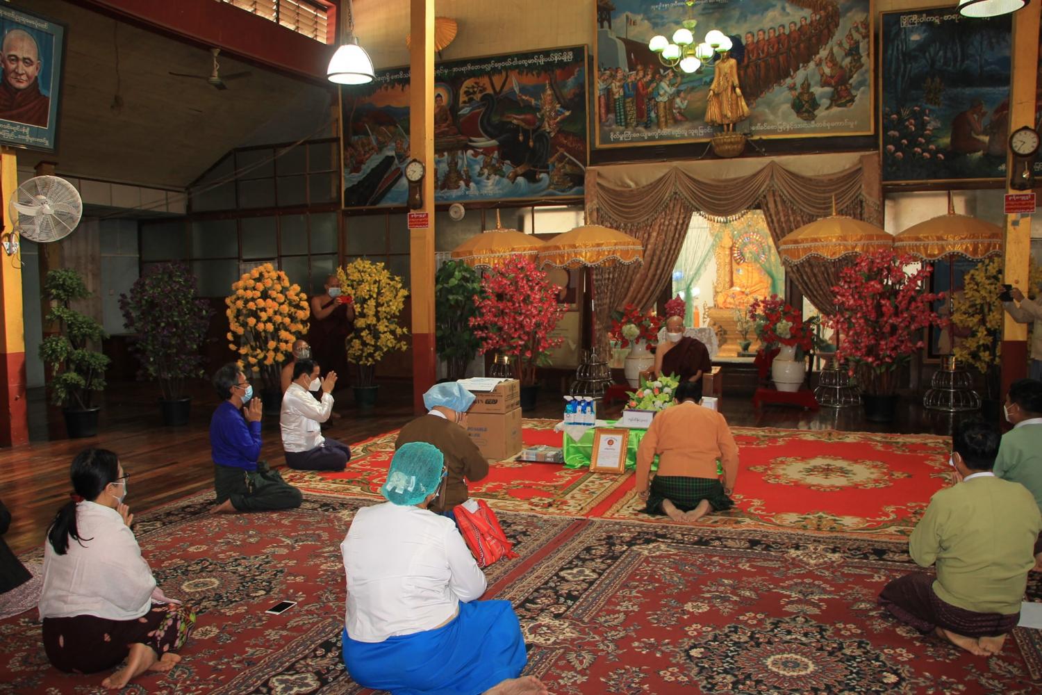ပဲခူးမြို့ သီရိမင်္ဂလာကြခတ်ဝိုင်း ပရိယတ္တိစာသင်တိုက် ဆရာတော်ကြီးမှ ကိုဗစ်-၁၉ ရောဂါ ကာကွယ်ဆေး ဝယ်ယူရန် အလှူငွေပေးအပ်လှူဒါန်းခြင်း အခမ်းအနားကို ယနေ့ နံနက် ၉ နာရီခွဲအချိန်က အဆိုပါ ကျောင်းတိုက်တွင် ကျင်းပခဲ့သည်။
