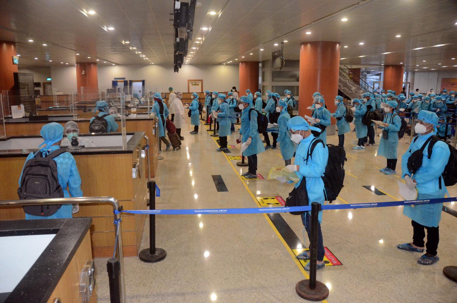 ၎င်းတို့ ရန်ကုန်အပြည်ပြည်ဆိုင်ရာလေဆိပ်သို့ ရောက်ရှိချိန်တွင် လူဝင်မှုကြီးကြပ်ရေး၊ ကျန်းမာရေး စိစစ်ရေး၊ သီးသန့်စီစဉ်ပေးသည့် နေရာ/သတ်မှတ် ဟိုတယ်များ၌ အသွားအလာ ကန့်သတ်မှု(၁၄)ရက်နှင့် နေအိမ်တွင် အသွားအလာကန့်သတ်မှု (၇)ရက် နေထိုင်စေရေးတို့ကို အလုပ်သမား၊ လူဝင်မှုကြီးကြပ်ရေးနှင့် ပြည်သူ့အင်အား ဝန်ကြီးဌာန၊ ကျန်းမာရေးနှင့် အားကစားဝန်ကြီးဌာနနှင့် ရန်ကုန်တိုင်းဒေသကြီးအစိုးရအဖွဲ့တို့မှ သက်ဆိုင်ရာ အခန်းကဏ္ဍ အလိုက် တာဝန်ယူဆောင်ရွက်ပေးခဲ့သည်။