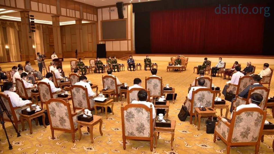 နိုင်ငံတော်စီမံအုပ်ချုပ်ရေးကောင်စီဥက္ကဋ္ဌ တပ်မတော်ကာကွယ်ရေးဦးစီးချုပ် ဗိုလ်ချုပ်မှူးကြီး မင်းအောင်လှိုင် မြန်မာနိုင်ငံ ကုန်သည်များနှင့် စက်မှုလက်မှုလုပ် ငန်းရှင်များ အသင်းချုပ် နှင့်ညီနောင်အသင်းများမှ လုပ်ငန်းရှင်များနှင့်တွေ့ဆုံ၍ နိုင်ငံ့ စီးပွားရေး ပြန်လည်တိုး တက် ကောင်းမွန်ရေးဆိုင်ရာများဆွေးနွေး