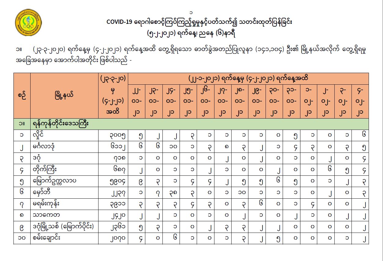 COVID-19 ရောဂါ စောင့်ကြပ်ကြည့်ရှုမှုနှင့် ပတ်သက်၍ သတင်းထုတ်ပြန်ခြင်း (5-2-2021, 6:00 PM)