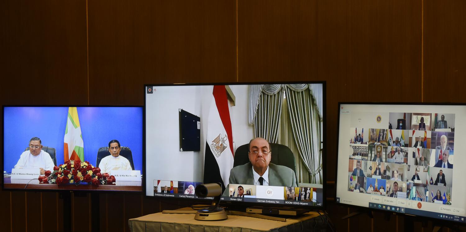 မြန်မာနိုင်ငံ၌ လက်ရှိဖြစ်ပေါ်လျက်ရှိသော အခြေအနေများနှင့်ပတ်သက်၍ နိုင်ငံခြားရေး ဝန်ကြီးဌာန ပြည်ထောင်စုဝန်ကြီး ဦးဝဏ္ဏမောင်လွင် နှင့် အပြည်ပြည်ဆိုင်ရာပူးပေါင်း ဆောင်ရွက်ရေးဝန်ကြီးဌာန ပြည်ထောင်စုဝန်ကြီး ဦးကိုကိုလှိုင်တို့က ယနေ့မွန်းလွဲပိုင်းတွင် မြန်မာနိုင်ငံ အခြေစိုက် ပြည်ပသံရုံးများမှ သံအမတ်ကြီးများ၊ သံတမန်များနှင့် ကုလသမဂ္ဂ လက်အောက်ခံအဖွဲ့အစည်းအများမှ အကြီးအကဲများအား ဗီဒီယိုကွန်ဖရင့်စနစ်ဖြင့် ရှင်းလင်း ပြောကြားသည်။