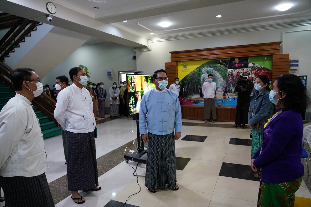 ဟိုတယ်နှင့် ခရီးသွားလာရေးဆိုင်ရာ လုပ်ငန်းညှိနှိုင်းအစည်းအဝေးကို ယနေ့ မွန်းလွဲပိုင်းတွင် ဝန်ကြီးဌာန နီလာအစည်းအဝေးခန်းမ၌ Social Distancing စနစ်ဖြင့် ကျင်းပသည်။