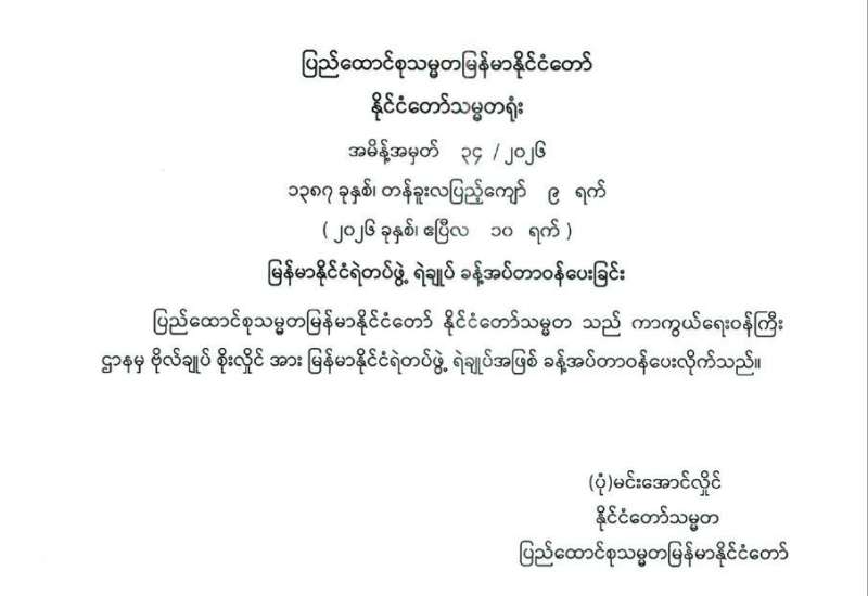 နိုင်ငံတော်စီမံအုပ်ချုပ်ရေးကောင်စီ၏ ပြည်သူသို့အသိပေးချက်