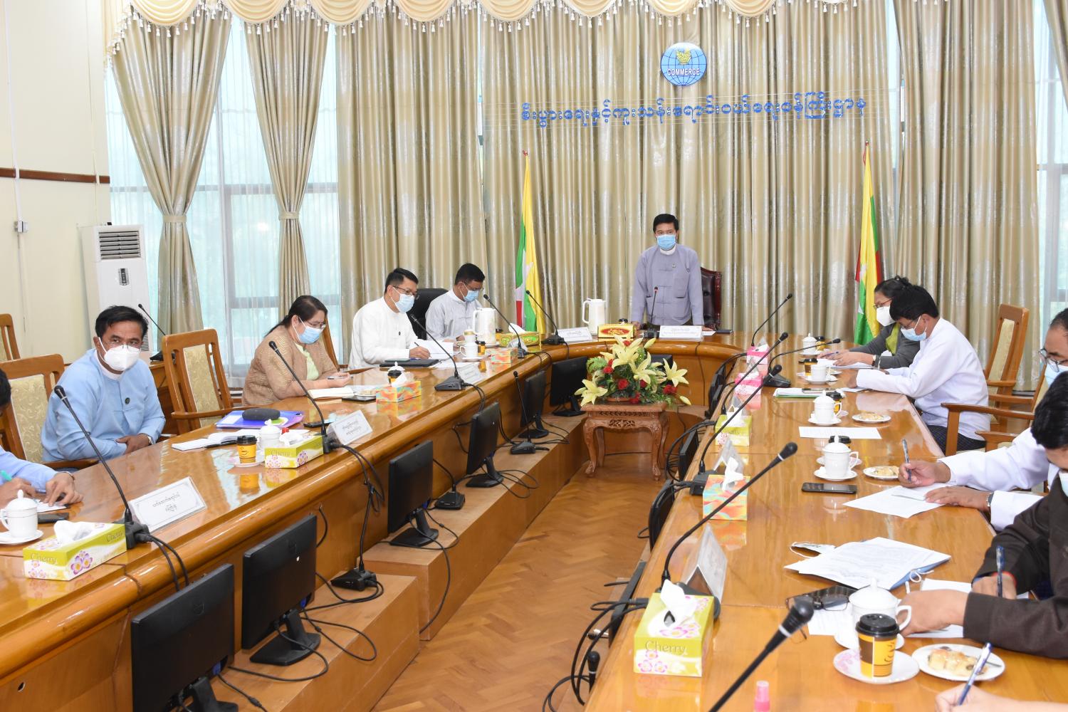 အစည်းအဝေးတွင် စီးပွားရေးနှင့် ကူးသန်းရောင်းဝယ်ရေးဝန်ကြီးဌာန၊ ပြည်ထောင်စုဝန်ကြီး ဒေါက်တာပွင့်ဆန်း က ဘင်္ဂလားဒေ့ရှ်နိုင်ငံသို့ ဆန်တန်ချိန် (၁) သိန်း တင်ပို့နိုင်ရန် G to G သဘော တူစာချုပ်များ လက်မှတ်ရေးထိုးထားပြီး မြန်မာနိုင်ငံကိုယ်စား မြန်မာနိုင်ငံဆန်စပါးအသင်းချုပ်က တာဝန်ယူ ဆောင်ရွက်သွားမည်ဖြစ်ကြောင်း၊ ပြည်ပသို့ အချိန်တိုအတွင်း တန်းမြင့်ဆန် တန်ချိန် (၁) သိန်း တင်ပို့ရာတွင် အဆင်ပြေချောမွေ့စေရေးအတွက် သက်ဆိုင်ရာဝန်ကြီးဌာနများနှင့် အသင်းအဖွဲ့များပူးပေါင်း၍ Task Force ဖွဲ့စည်း၍ ဆောင်ရွက်သွားမည်ဖြစ်ကြောင်း၊ ဆန်အပြင် အခြားလယ်ယာထွက်ကုန် တင်ပို့မှုများ အဆင်ပြေချောမွေ့စေရေးအတွက် ဝန်ကြီးဌာန များဘက်မှလည်း ကူညီဆောင်ရွက်ပေးသွားမည်ဖြစ်ကြောင်း  ပြောကြားသည်။