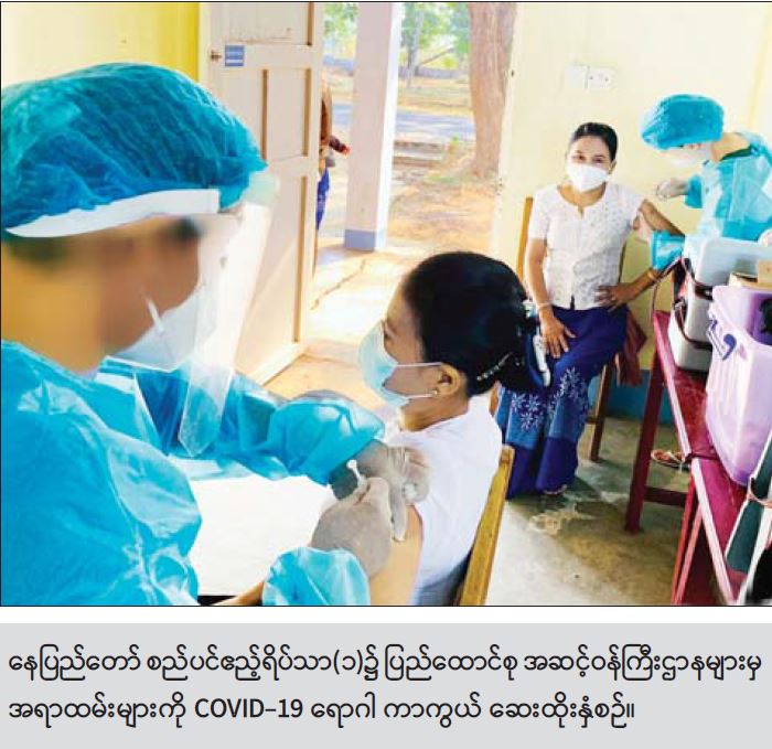 (၁၈-၂-၂၀၂၁)ရက်တွင် ပြည်ထောင်စုအဆင့် ဝန်ကြီးဌာန(၇)ခုမှ အရာထမ်း(၄၁၉)ဦးအား ကိုဗစ်-၁၉ ရောဂါကာကွယ်ဆေး ထိုးနှံပြီးဖြစ်ကြောင်းသိရသည်။