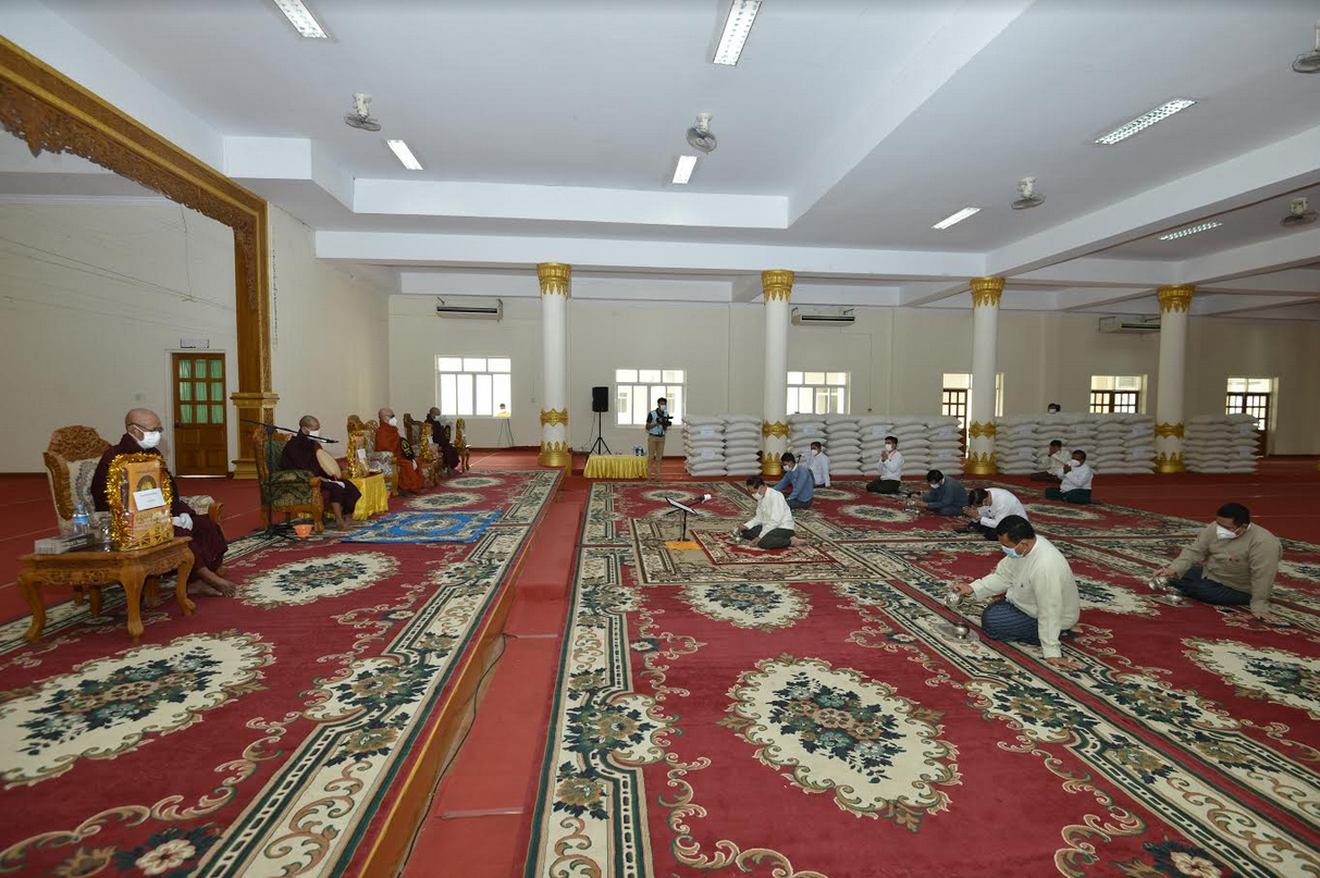ထို့နောက် ပြည်ထောင်စုဝန်ကြီးက သာသနာရေးဆိုင်ရာများ လျှောက်ထားရာတွင် ကိုဗစ်-၁၉ ရောဂါဖြစ်ပွားနေစဉ်ကာလအတွင်း ဆရာတော်များ၏ ဆွမ်းဘောဇဉ်အတွက် တစ်ဖက် တစ်လမ်းမှ အထောက်အကူပြုနိုင်စေရန် ရည်သန်လျက် ဝန်ကြီးဌာနက နေပြည်တော် အတွင်းရှိ ပရိယတ္တိ စာသင်တိုက်များသို့ ဆွမ်းဆန်တော်များကို ၂၀၂၀ ပြည့်နှစ်၊ မေလတွင် ၈၅၂ အိတ်၊ အောက်တိုဘာလတွင် ၉၁၄ အိတ် လှူဒါန်းခဲ့ပါကြောင်း၊ ၂၀၂၁ ခုနှစ် ဖေဖော်ဝါရီ ၈ ရက်မှစ၍ တိုင်းဒေသကြီး/ ပြည်နယ်အသီးသီးရှိ ဘုရားစေတီ ပုထိုးများအား ပြည်သူအများ ဖူးမြော် ကြည်ညိုခွင့်ရရှိနိုင်ရေး ညွှန်ကြားချက်များနှင့်အညီ ဖွင့်လှစ်ပေးနိုင်ခဲ့ပါကြောင်း၊ ပရိယတ္တိ၊ ပဋိပတ္တိသာသနာတော် တိုးတက်ထွန်းကားစေရန်နှင့် ဗုဒ္ဓမြတ်စွာ သာသနာ တော်မြတ်ကြီး တည်တံ့ဝေစည်နိုင်စေရန်အတွက် ကိုယ်စွမ်း၊ ဉာဏ်စွမ်းရှိသမျှ ဆက်လက် ဆောင်ရွက်သွားမည် ဖြစ်ပါကြောင်း၊ ယနေ့ဆည်းပူးအားထုတ်ရသော ကုသိုလ် ကောင်းမှုများကြောင့် ကိုဗစ်-၁၉ ကပ်ဘေးမှ ကင်းဝေးနိုင်ကြပြီး အေးချမ်းသာယာ နိုင်ပါစေကြောင်း လျှောက်ထားသည်။