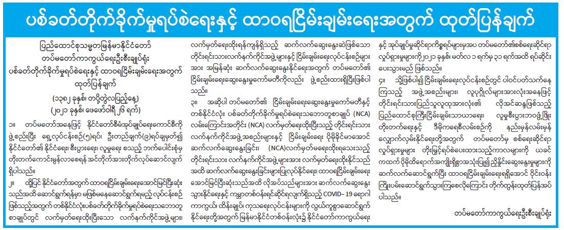 နိုင်ငံတော်အစိုးရ၏ ကြေညာချက်များ