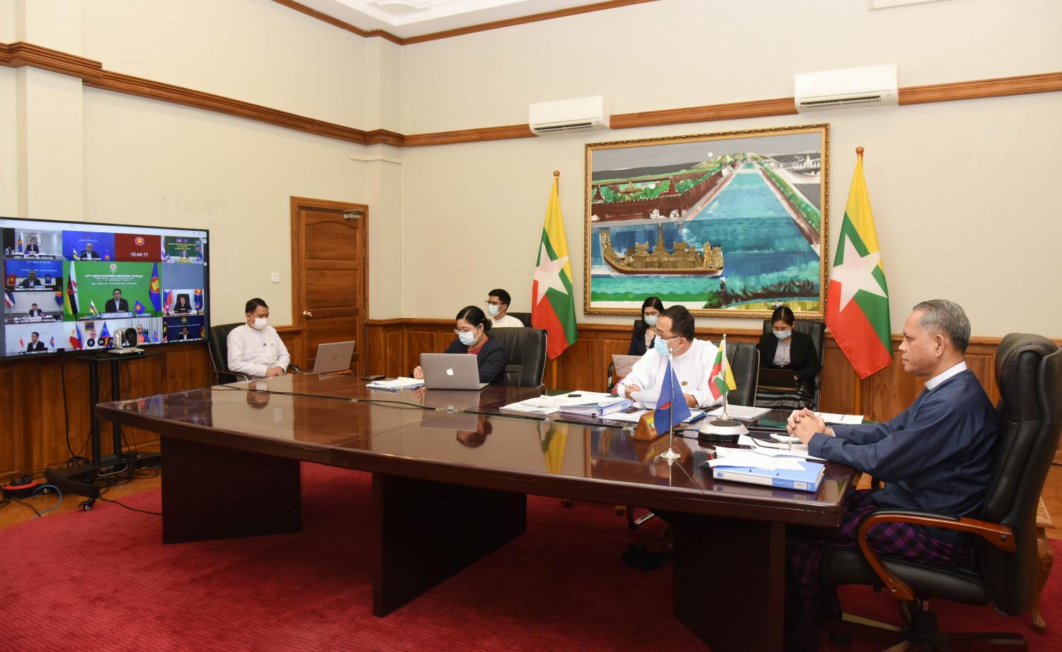 (၂၇) ကြိမ်မြောက် အာဆီယံ စီးပွားရေးဝန်ကြီးများ သီးသန့်အစည်းအဝေး (ဒုတိယနေ့) ကို ယနေ့တွင် ဗီဒီယိုကွန်ဖရင့်စနစ်ဖြင့် ဆက်လက်ကျင်းပရာ ရင်းနှီးမြှုပ်နှံမှုနှင့် နိုင်ငံခြားစီးပွားဆက် သွယ်ရေးဝန်ကြီးဌာန ပြည်ထောင်စုဝန်ကြီး ဦးအောင်နိုင်ဦး နေပြည်တော်မှ ပါဝင်တက်ရောက် သည်။