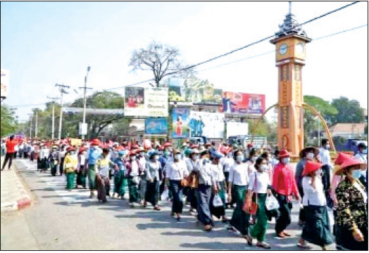 နိုင်ငံတော်ဆန့်ကျင်ရေးကို ဦးတည်ဆောင်ရွက်နေသည့် အဖွဲ့အစည်း များအနေဖြင့် နေရာဒေသအချို့၌ ဥပဒေများအား ချိုးဖောက်ကာ သာမန် လူစုလူဝေးဖြင့် အများပြည်သူ အသုံးပြု သွားလာနေသည့် လမ်းကြောင်း များအား တာယာကွင်းများ အစုအပုံ လိုက်ဖြင့် တားဆီးခြင်း၊ မီးရှို့ခြင်း၊ သစ်ပင်သစ်ကိုင်းများအား ခုတ်လှဲ၍ လမ်းပိတ်ဆို့ခြင်း၊ ကွန်ကရစ်တုံးများ ချထား၍ လမ်းပိတ်ဆို့ခြင်းများပြုလုပ် ခြင်း၊ လုံခြုံရေးတပ်ဖွဲ့ဝင်များအား ဂျင်ကလိ၊ လောက်လေးခွ၊ သံဆူးချွန် များဖြင့် ပစ်ခတ်ခြင်း၊ ဒေသအချို့တွင် တူမီးနှင့် လေသေနတ်များ အသုံးပြု ပစ်ခတ်ခြင်း၊ လုံခြုံရေးတပ်ဖွဲ့ဝင် များအား ဖမ်းဆီးနှိပ်စက်ခြင်း၊ လုံခြုံရေး ကင်မရာ (CCTV) များအား ဖျက်ဆီးခြင်း နှင့် ပြည်သူပိုင်ယာဉ်များအား ဖျက်ဆီး ခြင်း စသည့်လုပ်ငန်းများကို အကြမ်း ဖက်အဖွဲ့အစည်းပုံစံဖြင့် အဖျက် အမှောင့်လုပ်ငန်းများ လုပ်ဆောင် နေကြသည်ကို တွေ့ရှိရကြောင်း မြန်မာနိုင်ငံရဲတပ်ဖွဲ့၏ သတင်း ထုတ်ပြန်ချက်အရ သိရသည်။