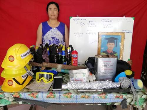 ထို့ပြင် ဆူပူအကြမ်းဖက်မှုများ ပြုလုပ်ရာတွင် အသုံးပြုသည့်ပစ္စည်းများ စုဆောင်း ထားရှိကြောင်း တာဝန်သိပြည်သူများ၏ သတင်းပေးချက်အရ တောင်ဥက္ကလာပမြို့နယ်၊ အမှတ်(၅)ရပ်ကွက်၊ ပင်းယ(၁၇)လမ်း၊ အမှတ်(၉၉၉/ခ) နေ ဦးဝင်းမင်းသိုက် နေအိမ်အား တာဝန်ရှိသူများနှင့်အတူ လုံခြုံရေးတပ်ဖွဲ့ဝင်များက လိုအပ်သည့် ရှာဖွေစစ်ဆေးမှုများ ဆောင်ရွက်ခဲ့ရာ နေအိမ်ဧည့်ခန်းရှိ စက္ကူဂျပ်ဖာအတွင်းမှ ဓာတ်ဆီနှင့်လောင်စာစထည့် ထားသည့် မီးပုလင်း ၂၀ လုံး၊ အင်ဂျင်ဝိုင် ၁ ပုံး၊ လက်လုပ် လေသေနတ် ၁ လက်၊ ဖိုင်ဘာဦးထုပ် ၂ လုံး၊ ဓာတ်ငွေ့ကာ Mask ၂ ခု၊ မီးသတ်ဆေးဗူး ၂ ဗူးနှင့် ဆူပူအကြမ်းဖက်ရာတွင် အသုံးပြုသည့် ဆက်စပ်ပစ္စည်းများ၊ “စခန်းမီးရှို့ရန်”ဟု ရေးသားထားသည့် အလျား ၂ ပေ၊ အနံ ၂ ပေခန့်ရှိ Whငအန ဩမေိ ၁ ခုတို့နှင့်အတူ ဒေါ်လှလှနွယ်(ဘ)ဦးလှမြင့်အား ဖမ်းဆီးရမိခဲ့ပြီး ၎င်း၏ ခင်ပွန်းဖြစ်သူ ဝင်းမင်းသိုက်(ဘ) ဦးစိန်မောင်နှင့် သားနှစ်ဦးဖြစ်သည့် ဝေယံဟိန်း၊ ဟိန်းထက်အောင် တို့ ၃ ဦးမှာ ထွက်ပြေး တိမ်းရှောက်လျက်ရှိကြောင်း သိရှိရသည်။