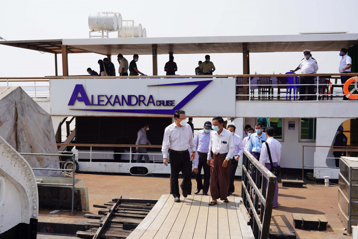 ဟိုတယ်နှင့် ခရီးသွားလာရေးဝန်ကြီးဌာန၊ ပြည်ထောင်စုဝန်ကြီး ဦးမောင်မောင်အုန်းသည် ယမန်နေ့ နံနက်ပိုင်းတွင် ရန်ကုန်မြို့ ဗိုလ်တစ်ထောင်ဆိပ်ကမ်းသို့ရောက်ရှိပြီး မြန်မာနိုင်ငံ ခရီး သွားလုပ်ငန်းအဖွဲ့ချုပ်နှင့် ညီနောင်အသင်းများမှဥက္ကဋ္ဌနှင့် တာဝန်ရှိသူများနှင့် ရန်ကုန်မြစ် အတွင်း ပြေးဆွဲလျက်ရှိသည့် ပြည်တွင်းရေကြောင်း ပို့ဆောင်ရေးမှ တိုးပွားအပျော်စီးသင်္ဘာဖြင့် ရန်ကုန် မြစ်ကြောင်းတစ်လျှောက် လိုက်ပါစီးနင်းကာ တာဝန်ရှိသူများကို ပြည်သူများ ဈေးနှုန်း သက်သာစွာဖြင့် လာရောက်အပန်းဖြေ စီးနင်းနိုင်ရေးနှင့် စီးနင်းလိုက်ပါမည့် ပြည်သူများ၏ ဘေးအန္တရယ် ကင်းရှင်းရေးကိုလည်း အထူးအလေးထား ဆောင်ရွက်သွားရန် လိုအပ်ကြောင်း ဆွေးနွေးမှာကြားသည်။
