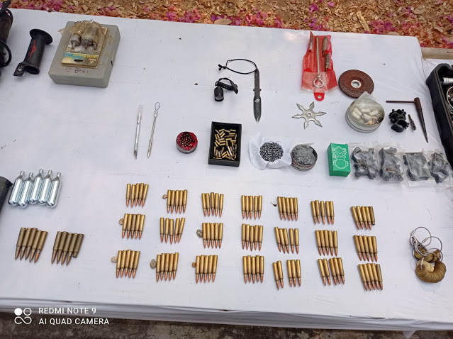 ဆက်လက်၍ ဆက်စပ်သတင်းအရ မွန်းလွဲ ၂ နာရီ ၂၀ မိနစ်အချိန်တွင် မကွေးမြို့၊ ဈေးလမ်းဆုံရပ်ကွက်၊ ပန်းခြံအနောက်လမ်းနေ ဟေမာန်အောင် (၃၀)နှစ်၏ နေအိမ်အား ဝင်ရောက်ရှာဖွေခဲ့ရာ ဟေမာန်အောင်အား တွေ့ရှိဖမ်းဆီးရမိခဲ့ပြီး ၎င်းနေအိမ်အိပ်ခန်းအတွင်းမှ .JD 007 နံပါတ်ပါ ပွိုင့် ၂၂ သေနတ် ၁လက်၊ အမျိုးအစား(စိစစ်ဆဲ) သေနတ်အတို ၁ လက်၊ စုစုပေါင်းသေနတ် ၂ လက်၊ ပွိုင့် ၂၂ ကျည် ၄၉ တောင့်၊ ပွိုင့် ၂၂ ကျည်ကဒ် ၂ ခု၊ စနိုက်ပါဆက်စပ်ပစ္စည်း ၁ စုံ၊ သံစင်္ကြာ ၁ ခု၊ ဓားရှည် ၂ ချောင်းနှင့် ခေါက်ဓား ၁ ချောင်းတို့အား သိမ်းဆည်းရမိခဲ့ပါသည်။