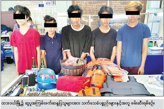 နေပြည်တော် မတ် ၂၅ လုံခြုံရေးတပ်ဖွဲ့ဝင်များမှ နေရာ ဒေသအချို့တွင် ဆူပူအကြမ်း ဖက်မှုလုပ်ရပ်များ၌ အသုံးပြုမည့် လက်နက်၊ ပစ္စည်း ကိရိယာများ၊ နှင့် လက်ဝယ်ထားရှိသူများကို ဖော်ထုတ် ဖမ်းဆီးခဲ့ကြောင်း မြန်မာနိုင်ငံရဲတပ်ဖွဲ့ ၏ သတင်း ထုတ်ပြန်ချက်အရ သိရသည်။ အဆိုပါ သတင်းထုတ်ပြန် ချက်အရ လုံခြုံရေးတပ်ဖွဲ့ဝင်များ ပါဝင်သော ပူးပေါင်းအဖွဲ့သည် ယနေ့နံနက် ၈ နာရီ မိနစ် ၃၀ ခန့် က ဆူပူအကြမ်းဖက်မှုလုပ်ရပ် များတွင် အသုံးပြုရန်အတွက် လက်နက်ကိရိယာများ သိမ်း ဆည်းထားရှိကြောင်းသတင်းအရ ထားဝယ်မြို့၊ ကြက်စားပြင် ရပ်ကွက်၊ (၈)လမ်းနေ ဝေယံဌေး (ခ) ဝေယံ၏ နေအိမ်အား ဝင်ရောက်ရှာဖွေခဲ့ရာ နေအိမ် အတွင်း ဝေယံဌေး(ခ) ဝေယံ (၂၃) နှစ် (ဘ) ဦးကျော်နိုင် အပါအဝင် တစ်ရပ်ကွက်တည်းနေ ဖြိုးမင်းကို (၂၂)နှစ် (ဘ) ဦးညီညီလွင်နှင့် မင်းကိုဦး (၂၈)နှစ်၊ (ဘ) ဦးညိုဝင်း တို့ ၃ ဦး ကို တွေ့ရှိရသဖြင့် ထိန်းသိမ်းခဲ့ပြီး ဆက်လက်ရှာဖွေ ခဲ့ရာ နေအိမ်အတွင်းမှ ဂက်(စ်) သေနတ် ၁ လက်၊ သံဘောစေ့ (၁၀၀)ပါသံဘူး၂ဘူး၊ သံဘောစေ့ ကြီး၂လုံး၊ ဓာတ်ငွေ့ကာမျက်နှာဖုံး ၃ ခုနှင့် ကျည်ကာအင်္ကျီ ၁ ထည် တို့ကို တွေ့ရှိသိမ်းဆည်းရမိခဲ့ ကြောင်း။ ။ လုံခြုံရေး တပ်ဖွဲ့ဝင်များမှ ဝေယံဌေး၏နေအိမ်ကို ဝင်ရောက် ရှာဖွေနေစဉ် နံနက် ၈ နာရီ မိနစ် ၅၀ ခန့်၌ လူစုလူဝေးအင်အား ၃၀ ခန့်မှ စုဝေးရောက်ရှိလာပြီး ဆူပူဆန္ဒပြနေသဖြင့် အဓိကရုဏ်း နှိမ်နင်းရေး လက်နက်များဖြင့် ခြောက်လှန့် ပစ်ခတ်လူစုခွဲခဲ့ရာ နံနက် ၉ နာရီတွင် လူစုကွဲသွား ခဲ့ကြောင်း။ အလားတူ နံနက် ၉ နာရီ ၁၅ မိနစ်အချိန်တွင် လုံခြုံရေးတပ်ဖွဲ့ ဝင်များပါဝင်သော ပူးပေါင်းအဖွဲ့ သည် မရမ်းကုန်းမြို့နယ်၊ အမှတ် (၃)ရပ်ကွက်၊ ဗိုလ်ချုပ်လမ်း၊ အောင်သဇင်ဓမ္မာရုံသို့ သတင်း အရဝင်ရောက်ရှာဖွေခဲ့ရာ ရဲလင်း ထက် (၂၁)နှစ်(ဘ) ဦးအောင်လင်း၊ ဇွဲသီဟ (၂၀)နှစ် (ဘ) ဦးကိုကို အောင်၊ ဇင်မင်းပိုင် (၁၂)နှစ် (ဘ) ဦးအေးပိုင်၊ အာကာဦး (၁၇)နှစ် (ဘ) ဦးသန်းနိုင်စိုးနှင့် သက်ပိုင်ဦး (၁၇)နှစ် (ဘ) ဦးသံချောင်းတို့ ၅ ဦးကို တွေ့ရှိရသဖြင့် ထိန်းသိမ်း ခဲ့ပြီး ဆက်လက်ရှာဖွေခဲ့ရာ ဓမ္မာရုံအတွင်းမှ ဂျင်ကလိ အချောင်း ၅၀ ၊ ကျည်ကာအင်္ကျီ ၅ ထည်၊ လက်လုပ်ဗုံး ၅ လုံး၊ ဓား ၂ ချောင်း၊ မီးခိုးကာ မျက်မှန် ၉ ခု၊ ကယ်ဆယ်ရေးအကျီ၁၀ ထည်နှင့် ဆက်စပ်ပစ္စည်း ကိရိယာများ သိမ်းဆည်းရမိခဲ့ကြောင်း။ ထိုကဲ့သို့ ဆူပူအကြမ်းဖက်မှု “လုပ်ရပ်များတွင် အသုံးပြုမည့် လက်နက်ကိရိယာများ သိမ်း ဆည်းရမိမှုနှင့် ပတ်သက်၍ ဖမ်းဆီးရမိသူများအား ဥပဒေနှင့် အညီ အရေးယူနိုင်ရေးဆက်လက် ဆောင်ရွက်လျက်ရှိကြောင်း သိရ သည်။ သတင်းစဉ်