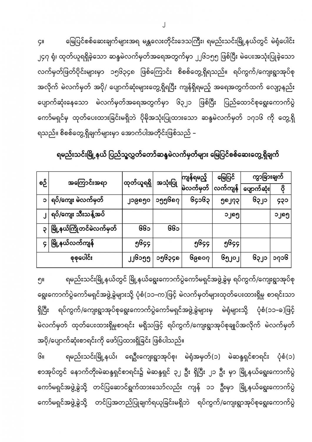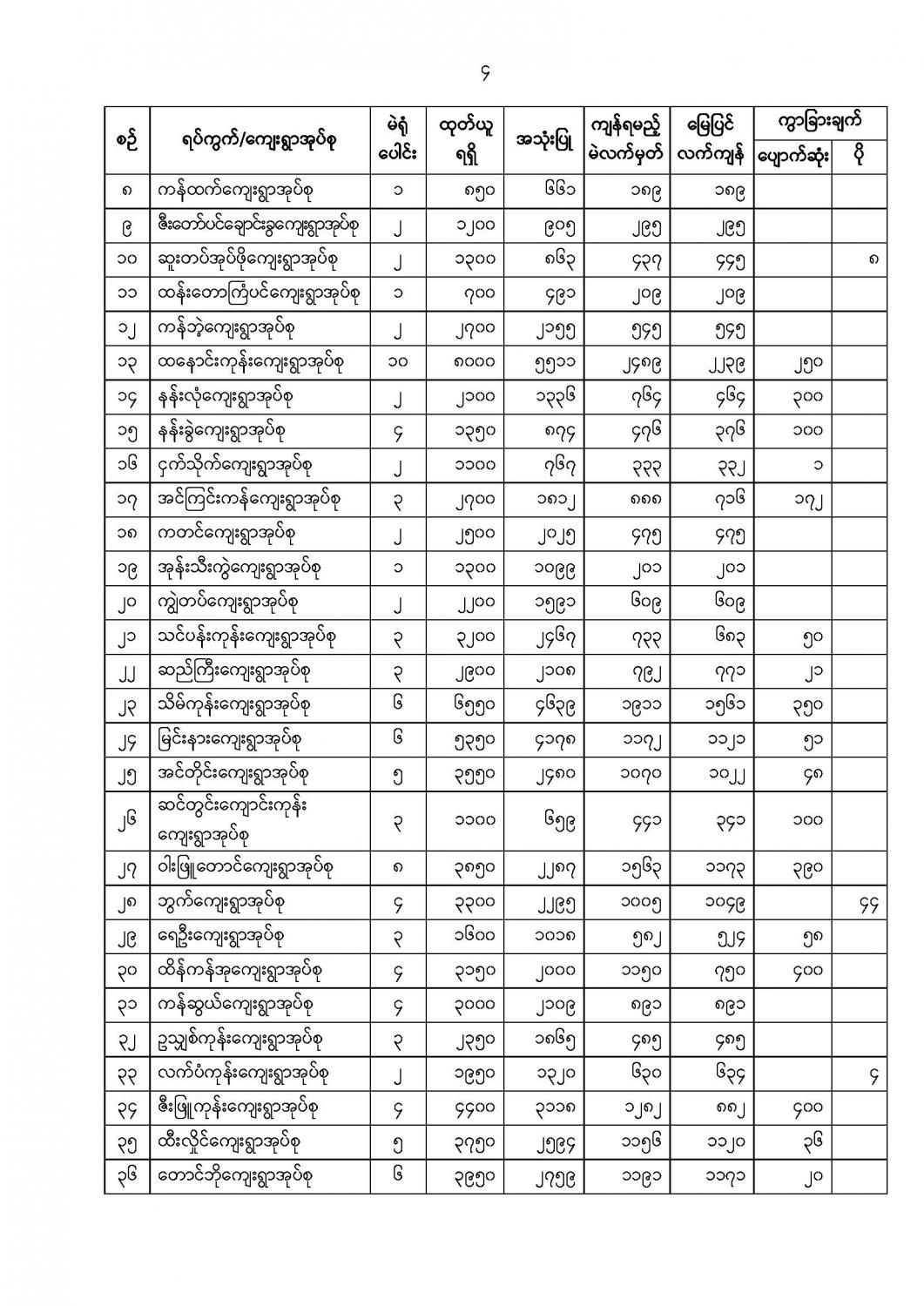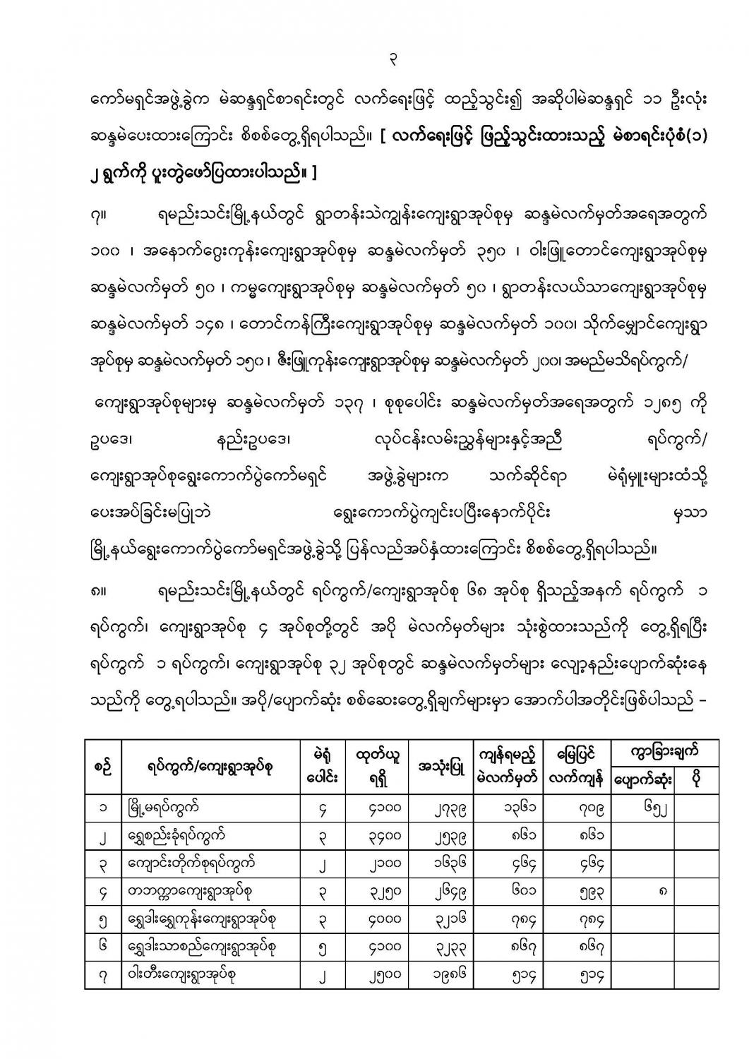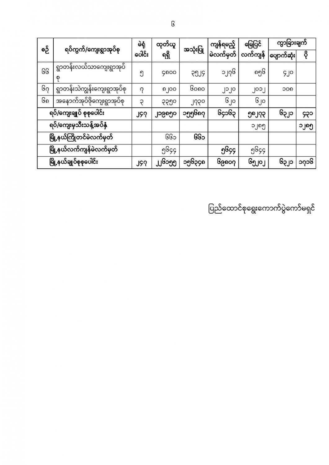 ဦးစီးဌာနနှင့် လုပ်ငန်းများ၏ ကြေညာချက်များ
