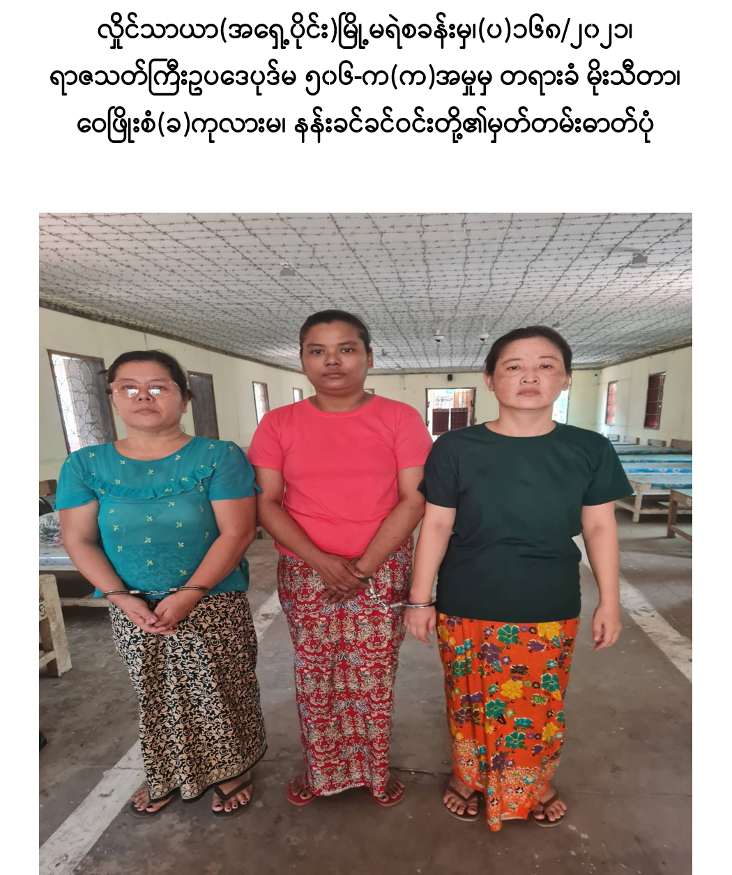 အဆိုပါပြစ်ဒဏ်ချမှတ်ခံရသူ ၂၆ ဦးအနက် အညာသား(ခ)မျိုးဇော်ထက်(ဘ) ဦးဝင်းခိုင်၊ မင်းခန့်(ခ)နှင်းကိုကို(ဘ)ဦးသောင်းတင်၊ ဒေါ်တင်တင်အေး(ဘ)ဦးငွေငြိမ်း၊ ဖိုးသဲ(ဘ)စိစစ်ဆဲ၊ အောင်နိုင်ကို(ဘ)စိစစ်ဆဲ၊ ယဉ်ထွေး(ဘ)စိစစ်ဆဲ၊ ဒေါ်ခင်မာဌေး (ဘ)စိစစ်ဆဲ၊ မပွင့်(ဘ)စိစစ်ဆဲ၊ မင်းမင်း(ခ)အောင်မင်းဦး(ဘ)ဦအုန်းလွင်၊ မြင့်ဦး (ဘ)စိစစ်ဆဲ၊ သန့်ဇင်(ဘ)စိစစ်ဆဲ၊ လှရီ(ဘ)စိစစ်ဆဲ၊ ကြည်လွင်(ဘ)ဦးအောင်လှိုင်၊ ဂျပန်ကြီး(ခ)ထွန်းထွန်းအောင်(ခ)ဘိုထွန်း(ဘ)ဦးသန်းရွှေ၊ ဖိုးကျော်(ခ)ကျော်ကြီး(ခ) ကျော်ကျော်လတ်(ဘ)ဦးမောင်မြင့်၊ သန့်ဇော်ဦး(ခ)သက်ဇော်ဦး(ဘ)ဦးဝင်းလှိုင်နှင့် ဥက္ကာ(ဘ)စိစစ်ဆဲ တို့သည် ထွက်ပြေးလွတ်မြောက်နေသဖြင့် ၎င်းနှင့်စပ်လျဉ်း၍ ရာဇဝတ်ကျင့်ထုံးဥပဒေပုဒ်မ-၈၇၊ ၈၈ အရ ဖမ်းဝရမ်းထုတ်ဆင့်ရန် အမိန့်ချမှတ်ခဲ့ သည်။