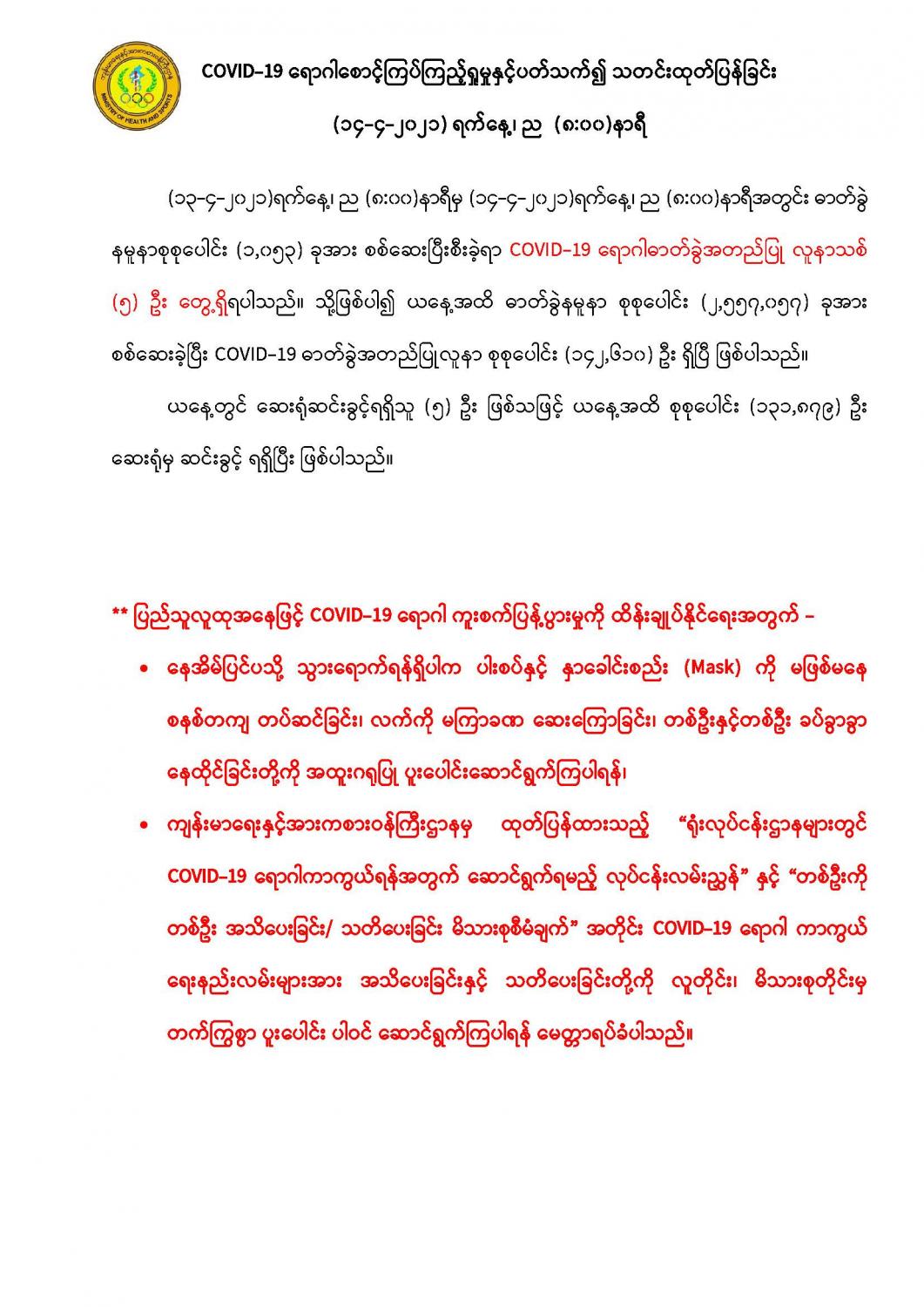 COVID-19 ရောဂါစောင့်ကြပ်ကြည့်ရှုမှုနှင့်ပတ်သက်၍ သတင်းထုတ်ပြန်ခြင်း (၁၄-၄-၂၀၂၁) ရက်နေ့၊ ည (၈:၀၀)နာရီ 04/14/2021