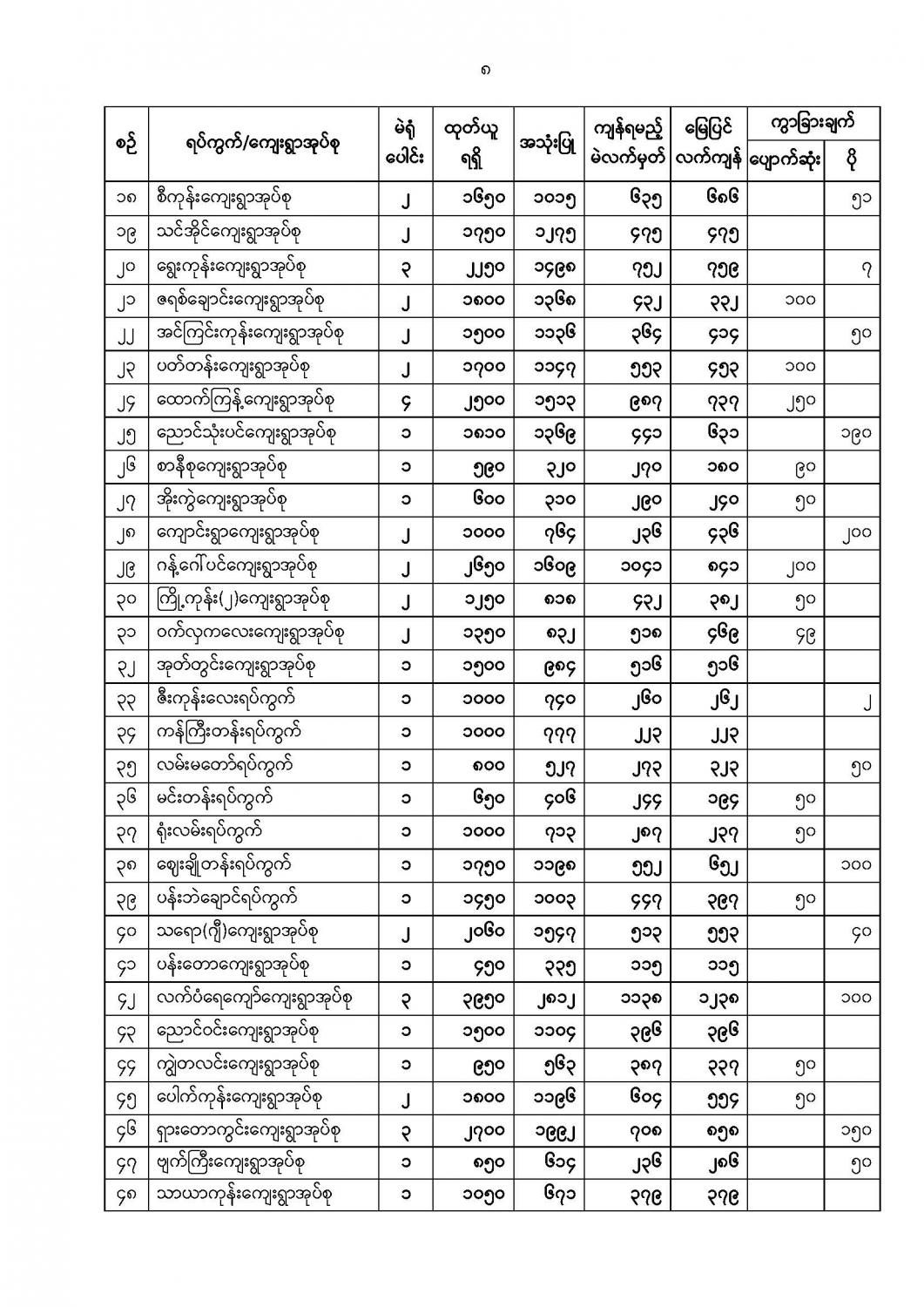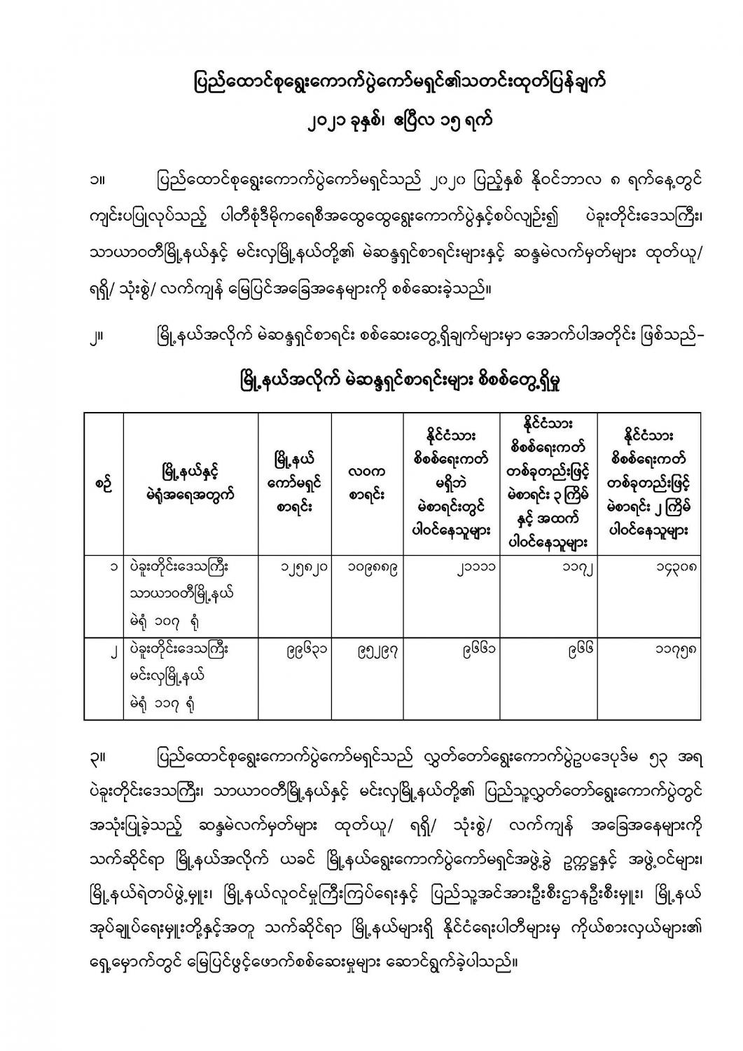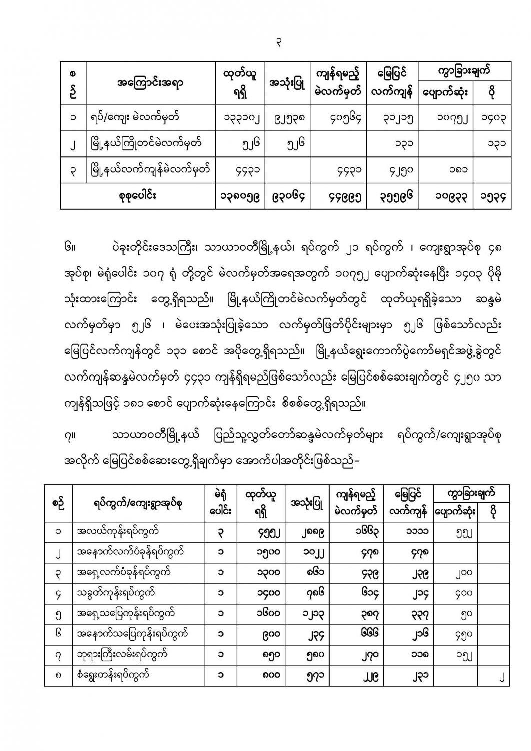 ရန်ကုန်မြို့နှင့် မန္တလေးမြို့အတွက် ရည်ညွှန်းလက်ကားဈေးနှုန်းများနှင့် ပြည်ထောင်စုနယ်မြေ နေပြည်တော်၊ တိုင်းဒေသကြီး/ပြည်နယ် မြို့တော်များအတွက် ရည်ညွှန်းလက်လီဈေးနှုန်းများ