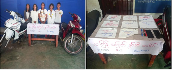 ထို့အတူ မွန်းလွဲ ၁၂ နာရီ ၄၅ မိနစ်တွင် လုံခြုံရေးတပ်ဖွဲ့ဝင်များပါဝင်သော ပူးပေါင်းအဖွဲ့ သည် ကော့သောင်းမြို့အဝင် ကြိုဆိုပါ၏ ဆိုင်းဘုတ်နှင့် ယင်းဝါရေလှောင်တမံတို့တွင် လုံခြုံရေးဆောင်ရွက်နေစဉ် ကော့သောင်းမြို့၊ သီရိမြိုင်ရပ်ကွက်၊ Welcome To Kawthaung ဆိုင်းဘုတ်အနီးတွင် ရွှေပြည်သာရပ်ကွက်နေ စစ်နိုင်(၁၈)နှစ်၊ (ဘ)ဦးမြင့်စိုးပါ ၅ ဦးကို ဆိုင်ကယ် ၂ စီး၊  A 4 စာရွက်ပေါ်တွင် We Need R2P၊ We Support R2P ၊ We Want Democracy စာသားနှင့် ပိတ်စပေါ်တွင် သင်္ကြန်အကြပ် နှင်းဆီသပိတ် စာသားများပါ နိုင်ငံတော်ဆန့်ကျင်ရေးစာသားများ ရေးသားထားသော ပိတ်စများနှင့်အတူ  ဖမ်းဆီးရမိခဲ့သည်။
