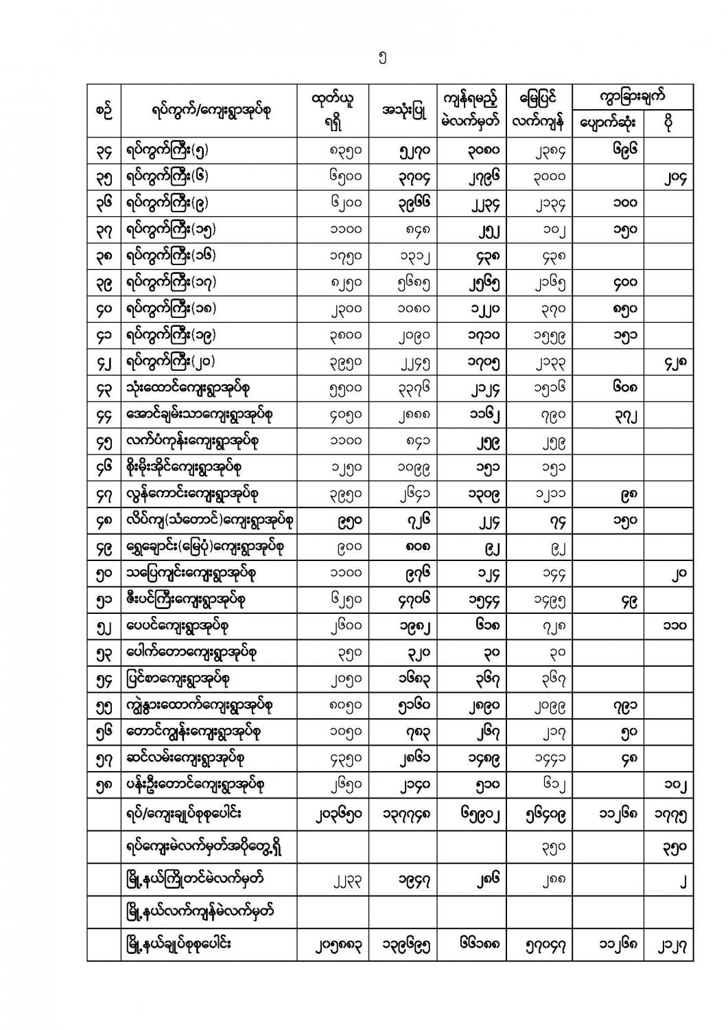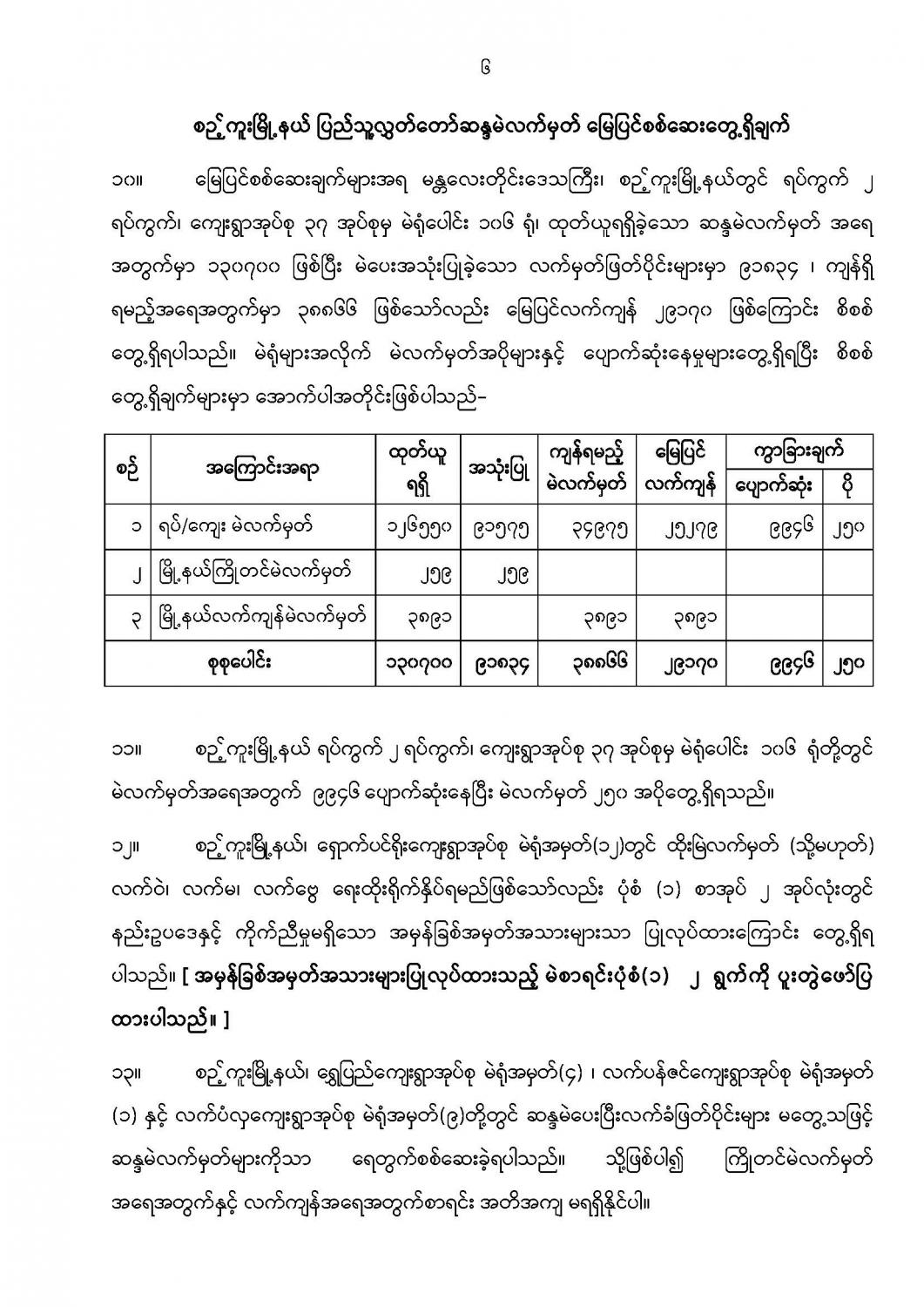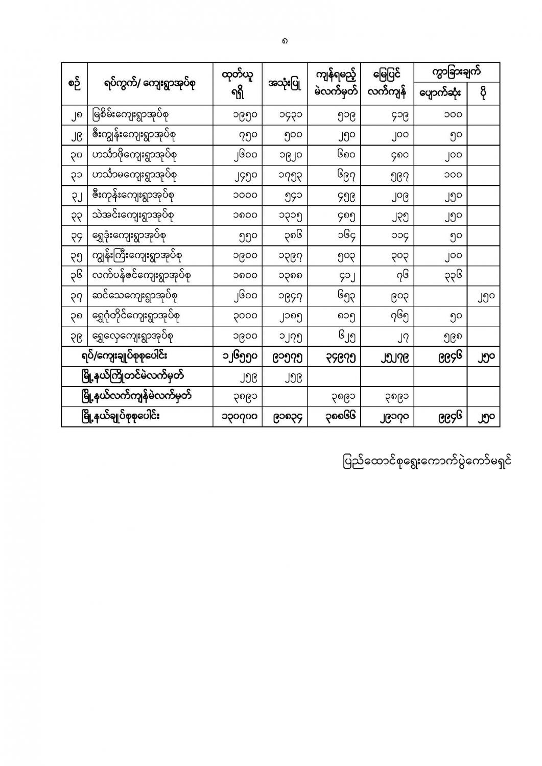 ရန်ကုန်မြို့နှင့် မန္တလေးမြို့အတွက် ရည်ညွှန်းလက်ကားဈေးနှုန်းများနှင့် ပြည်ထောင်စုနယ်မြေ နေပြည်တော်၊ တိုင်းဒေသကြီး/ပြည်နယ် မြို့တော်များအတွက် ရည်ညွှန်းလက်လီဈေးနှုန်းများ