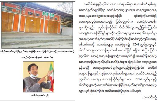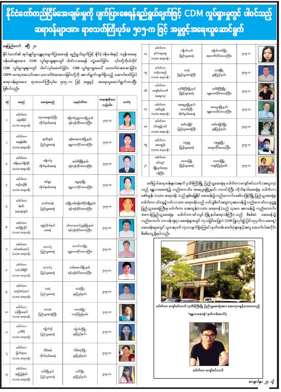 နိုင်ငံတော်တည်ငြိမ်အေးချမ်းမှုကို ပျက်ပြားစေရန် ရည်ရွယ်ချက်ဖြင့် CDM လှုပ်ရှားမှုတွင် ပါဝင်သည့် ဆရာဝန်များအား ရာဇသတ်ကြီး ပုဒ်မ ၅၀၅-က ဖြင့် အမှုဖွင့် အရေးယူဆောင်ရွက်