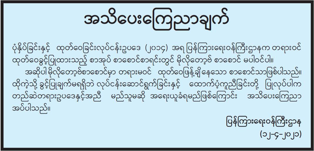 ဦးစီးဌာနနှင့် လုပ်ငန်းများ၏ ကြေညာချက်များ