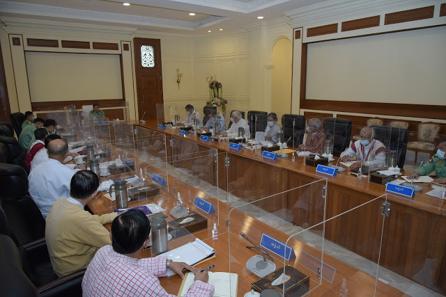 နိုင်ငံတော်စီမံအုပ်ချုပ်ရေးကောင်စီ အစည်းအဝေး (၉/၂၀၂၁)ကို ယနေ့မွန်းလွဲပိုင်း တွင် နေပြည်တော်ရှိ နိုင်ငံတော်စီမံအုပ်ချုပ်ရေးကောင်စီဥက္ကဋ္ဌရုံး အစည်းအဝေးခန်းမ၌ ကျင်းပရာ နိုင်ငံတော်စီမံအုပ်ချုပ်ရေးကောင်စီဥက္ကဋ္ဌ၊ တပ်မတော်ကာကွယ်ရေးဦးစီးချုပ် ဗိုလ်ချုပ်မှူးကြီး မင်းအောင်လှိုင် တက်ရောက်အမှာစကားပြောကြားသည်။