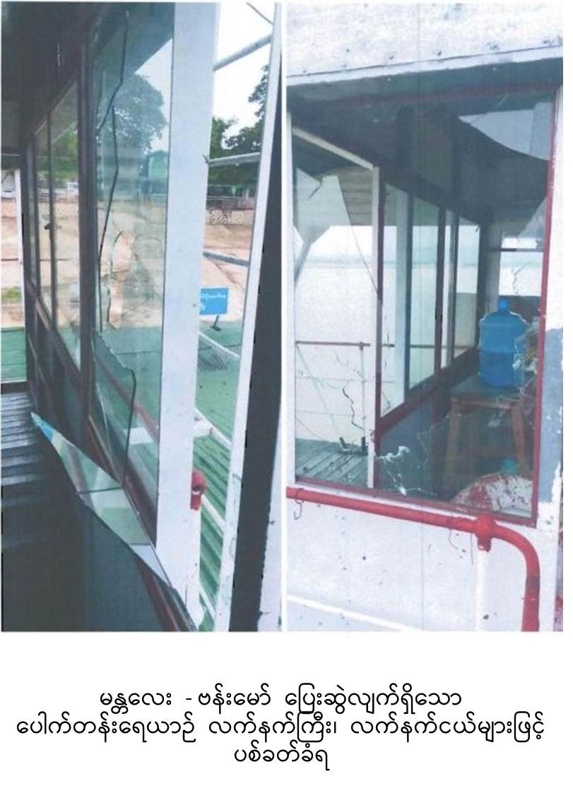 မန္တလေး(ဂေါဝိန်ဆိပ်ကမ်း)မှ (၃.၅.၂၀၂၁)ရက်နေ့ (၀၆:၀၀)နာရီအချိန်တွင် ခရီးသည်(၁၁)ဦး၊ ကုန်စည်(၂၁၅)တန်တင်ဆောင်ပြီး ထွက်ခွာ လာသော“ပေါက်တန်း”ရေယာဉ်သည် (၆.၅.၂၀၂၁) ရက်နေ့(၁၀:၂၀)နာရီတွင် ကသာသို့ ဝင်ရောက်ခဲ့ပြီး (၁၁:၀၀) နာရီအချိန်တွင် ခရီးသည် (၁၀)ဦး၊ ကုန်စည် (၁၉၉)တန်ဖြင့် ပြန်လည်ထွက်ခွာလာခဲ့ရာ (၂၀:၂၅) နာရီအချိန်ခန့်တွင် သာယာကုန်းနှင့် ကျောက်ကြီးရွာကြားအရောက် မြစ်၏လက်ဝဲဘက်ကမ်းမှ မောင်းနှင်နေစဉ် သောင်းကျန်းသူအဖွဲ့များ၏ လက်နက်ကြီး/ လက်နက်ငယ်များဖြင့် (၁၅)မိနစ်ကြာ ပစ်ခတ်ခံရမှု ကြောင့် တာဝန်ကျတက်မကိုင် ဦးဇော်မင်းဦးတွင် လက်နက်ကြီးအစ ထိမှန်ဒဏ်ရာ (မစိုးရိမ်ရ)နှင့် စက်ခန်းအုပ်(၄)ဖြစ်သူ ဦးအောင်ဇော်ငြိမ်းတွင် ပွန်းပဲ့ဒဏ်ရာများ အသီးသီးရရှိခဲ့ပါသည်။ ရေယာဉ်ကို လုံခြုံရေးရရှိနိုင်မည့် ရွှေကူသို့မောင်းနှင်ခဲ့ရာ (၂၃:၁၅)နာရီ တွင်ရောက်ရှိပြီး ဒဏ်ရာရဝန်ထမ်းများကို ဆေးကုသမှုပြုလုပ် ပေးခဲ့ကြောင်းနှင့် ခရီးသည်များ ထိခိုက်ဒဏ်ရာရရှိမှုမရှိကြောင်း သိရှိရပါသည်။