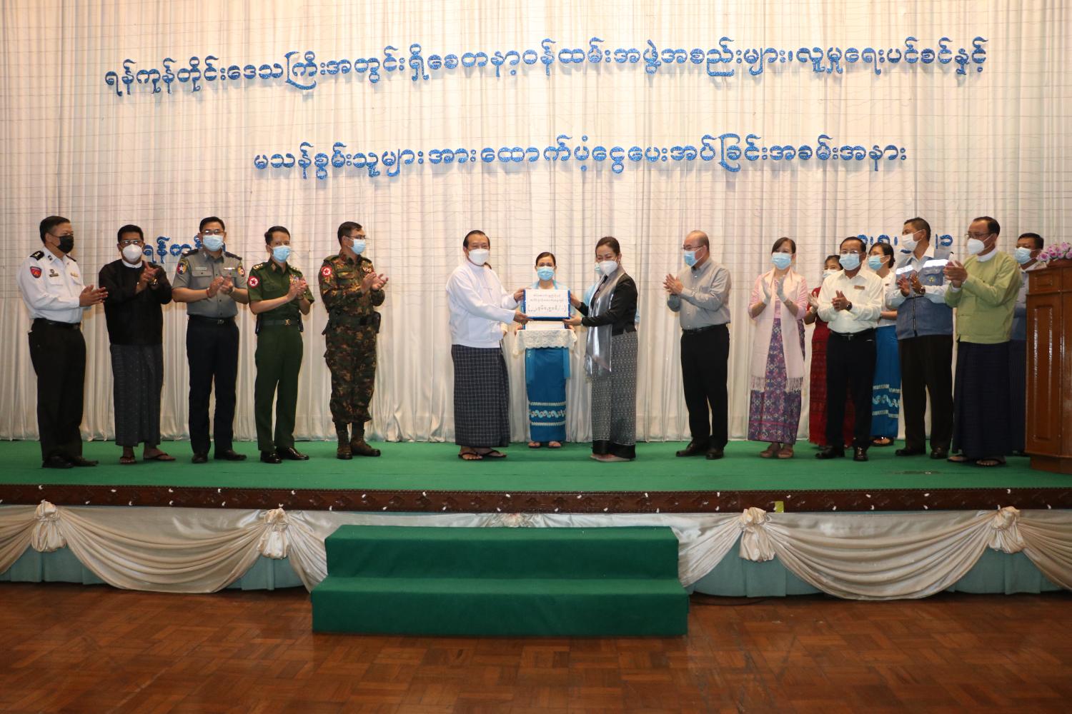ရန်ကုန် မေ ၉ ရန်ကုန်တိုင်းဒေသကြီးအတွင်းရှိ စေတနာ့ဝန်ထမ်းအဖွဲ့အစည်းများ၊ မသန်စွမ်းသူများ၊ သက်ကြီးရွယ်အိုများနှင့် လေဘေးသင့်ပြည်သူများအတွက် ထောက်ပံ့ခြင်းအခမ်းအနားကို မေ ၈ ရက် နံနက်ပိုင်းတွင် ရန်ကုန်တိုင်းဒေသကြီးစီမံအုပ်ချုပ်ရေး ကောင်စီရုံး၌ ကျင်းပသည်။ အခမ်းအနားသို့ လူမှုဝန်ထမ်းကယ်ဆယ်ရေးနှင့် ပြန်လည်နေရာချထားရေးဝန်ကြီးဌာန၊ ပြည်ထောင်စုဝန်ကြီး ဒေါက်တာသက်သက်ခိုင်၊ ရန်ကုန်တိုင်းဒေသကြီး စီမံအုပ်ချုပ်ရေး ကောင်စီဥက္ကဋ္ဌ၊ ဦးလှစိုး၊ လူမှုဝန်ထမ်းကယ်ဆယ်ရေးနှင့် ပြန်လည် နေရာချထားရေးဝန်ကြီး ဌာန၊ ဒုတိယဝန်ကြီး၊ ဦးအောင်ထွန်းခိုင်၊ ရန်ကုန်တိုင်းဒေသကြီး စစ်ဌာနချုပ် ဒုတိယတိုင်းမှူး ဗိုလ်မှူးချုပ် ဝင်းမြင့်ခိုင်၊ တိုင်းဒေသကြီးစီမံအုပ်ချုပ်ရေး ကောင်စီဝင်များ၊ ညွှန်ကြားရေးမှူး ချုပ်များ၊ ဌာနဆိုင်ရာ အကြီးအကဲများ၊ စေတနာ့ဝန်ထမ်း အဖွဲ့အစည်းများမှ ကိုယ်စားလှယ် များနှင့် မသန်စွမ်းပုဂ္ဂိုလ်များ တက်ရောက်ကြသည်။ အခမ်းအနားတွင် ပြည်ထောင်စုဝန်ကြီးက သက်ကြီးရွယ်အိုများဘဝမြှင့်တင်ရေးနှင့် စောင့်ရှောက်ရေးလုပ်ငန်းအနေဖြင့် သက်ကြီးရွယ်အိုများဆိုင်ရာဥပဒေ ပြဌာန်းထားရှိပြီး ဖြစ်သကဲ့သို့ နည်းဥပဒေ အတည်ပြုပြဌာန်းနိုင်ရေးကိုလည်း ဆက်လက်ဆောင်ရွက်လျက်ရှိပါ ကြောင်း၊ မသန်စွမ်းသူများပြုစုစောင့်ရှောက်ရေး လုပ်ငန်းများအနေဖြင့် မျက်မမြင်ကျောင်း များ၊ နားမကြားသောကလေးများကျောင်းများ၊ မသန်စွမ်းသက်ငယ်သန်တန်း ကျောင်းများ၊ မသန်စွမ်းသက်ကြီးသင်တန်းကျောင်း၊ မသန်စွမ်းကလေးများပြုစု စောင့်ရှောက်ရေးဂေဟာ များဖွင့်လှစ်ဆောင်ရွက်လျက်ရှိပါကြောင်း။ စေတနာ့ဝန်ထမ်းအဖွဲ့အစည်းများအား ထောက်ပံ့ရေးနှင့် ပူးပေါင်းဆောင်ရွက်ရေး လုပ်ငန်းအနေဖြင့် ၎င်းတို့ တည်ထောင်ဖွင့်လှစ်ထားရှိသော ပရဟိတဂေဟာများနှင့် ဘိုးဘွား ရိပ်သာများအတွက် ထောက်ပံ့ငွေပေးအပ်လျက်ရှိပါကြောင်း၊ လူမှု ကာကွယ်စောင့်ရှောက်ရေး လုပ်ငန်းအနေဖြင့် ၂၀၁၄ ခုနှစ်တွင် အတည်ပြုပြဋ္ဌာန်းခဲ့သည့် လူမှုကာကွယ်စောင့်ရှောက်ရေး ဆိုင်ရာ အမျိုးသားအဆင့် မဟာဗျူဟာစီမံချက်ပါ လုပ်ငန်းစဉ်နှင့် သက်ကြီးရွယ်အိုများ ဆိုင်ရာဥပဒေ (၂၀၁၆)ပါ သက်ကြီးရွယ်အိုများ ဝင်ငွေလုံခြုံမှုရရှိစေရေးတို့အတွက် လူမှုရေး ပင်စင်ထောက်ပံ့ခြင်းအစီအစဉ်အဖြစ် အသက် (၉၀)နှင့် အထက် သက်ကြီးရွယ်အိုများကို တစ်ဦးကို တစ်လလျှင် ကျပ်တစ်သောင်းနှုန်းဖြင့် သုံးလတစ်ကြိမ် ထောက်ပံ့ပေးရာ နောက်ပိုင်းတွင် အကျုံးဝင်အသက်ကို အသက်(၉၀)မှ အသက် (၈၅) နှစ်သို့လျှော့ချ၍ ထောက်ပံ့ပေးနိုင်ခဲ့ပါကြောင်း။ ဘေးအန္တရာယ် ဆိုင်ရာစီမံခန့်ခွဲမှုဦးစီးဌာနအနေဖြင့် ဝန်ကြီးဌာန၏မူဝါဒဖြ