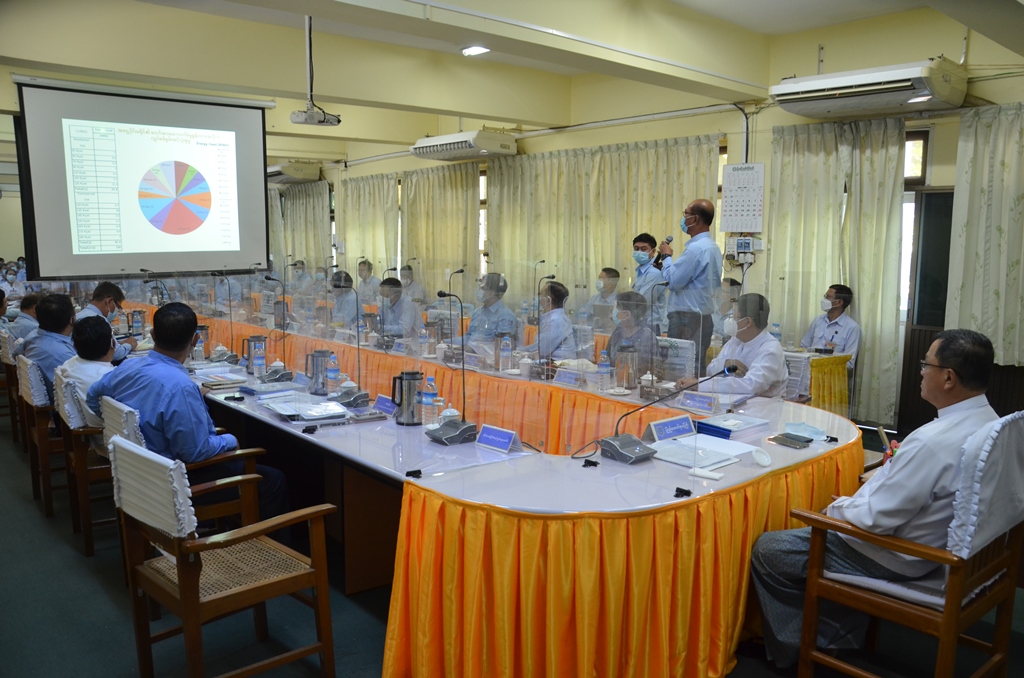 ထို့နောက် ရန်ကုန်တိုင်းဒေသကြီးအတွင်းရှိ အရှေ့ပိုင်းခရိုင်၊ အနောက်ပိုင်းခရိုင်၊ တောင်ပိုင်း ခရိုင်၊ မြောက်ပိုင်းခရိုင်များ၏ ခရိုင်လျှပ်စစ် မန်နေဂျာများက မိမိတို့ခရိုင် အလိုက် ဓာတ်အား ဖြန့်ဖြူးပေးထားမှု၊ မီးသုံးစွဲသူဦးရေ၊ ဓာတ်အားခကောက်ခံမှု၊ ဓာတ်အား ပြတ်တောက်မှု လျော့နည်းရေးအတွက် တိုးတက်ကောင်းမွန်စေရန် ဆက်လက်ဆောင်ရွက် မည့်အစီအမံများ နှင့် ဓာတ်အားခွဲရုံများ အခြေအနေတို့ကို ရှင်းလင်းတင်ပြကြသည်။