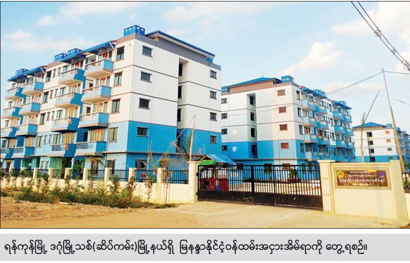 ရန်ကုန်တိုင်းဒေသကြီးအတွင်း တာဝန်ထမ်းလျက်ရှိသော နိုင်ငံ့ဝန်ထမ်း အငှားအိမ်ရာကို ဆောက်လုပ်ရေးဝန်ကြီးဌာန မြို့ပြနှင့် အိမ်ရာဖွံ့ဖြိုးရေးဦးစီးဌာနက တာဝန်ယူ တည်ဆောက်ခဲ့ကာ အိမ်ရာဖွင့်ပွဲအခမ်းအနားကို ပြီးခဲ့သည့် ဇန်နဝါရီ ၂၈ ရက် နံနက်ပိုင်းက ကျင်းပကြောင်း သိရသည်။