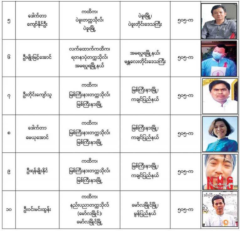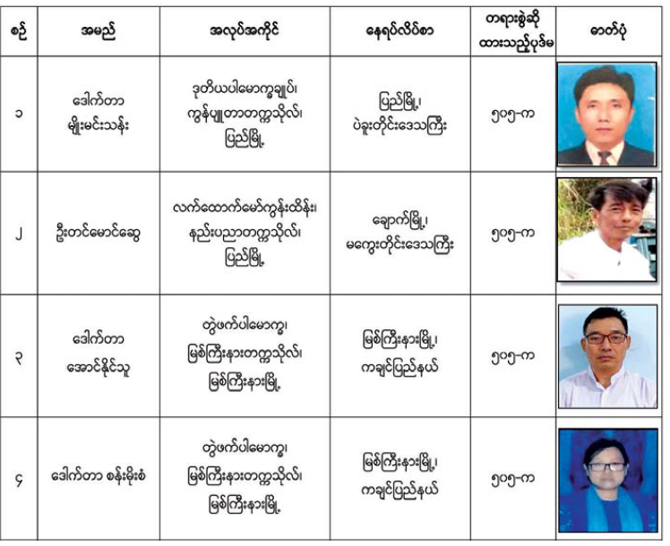 အဆိုပါ အမှုဖွင့်လှစ်ထားသော ပညာရေးဝန်ထမ်းများအား ဖမ်းဆီးရမိရေးဆောင်ရွက်လျက်ရှိပြီး ဖော်ပြပါပုဂ္ဂိုလ်များနှင့်စပ်လျဉ်း၍ နီးစပ်ရာရဲစခန်းများသို့ သတင်း ပေးပို့ရန်နှင့် လက်ခံထားရှိသူများအားလည်း တရားဥပဒေအရ အရေးယူဆောင်ရွက် သွားမည်ဖြစ်ကြောင်း အသိပေးကြေညာအပ်ပါသည်။