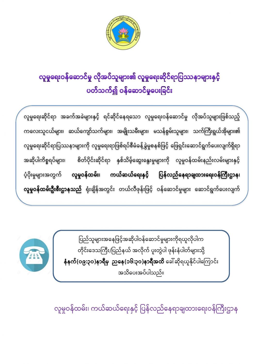 လူမှုရေးဝန်ဆောင်မှု လိုအပ်သူများ၏ လူမှုရေးဆိုင်ရာပြဿနာများနှင့် ပတ်သက်၍ ဝန်ဆောင်မှုပေးခြင်း 05/17/2021