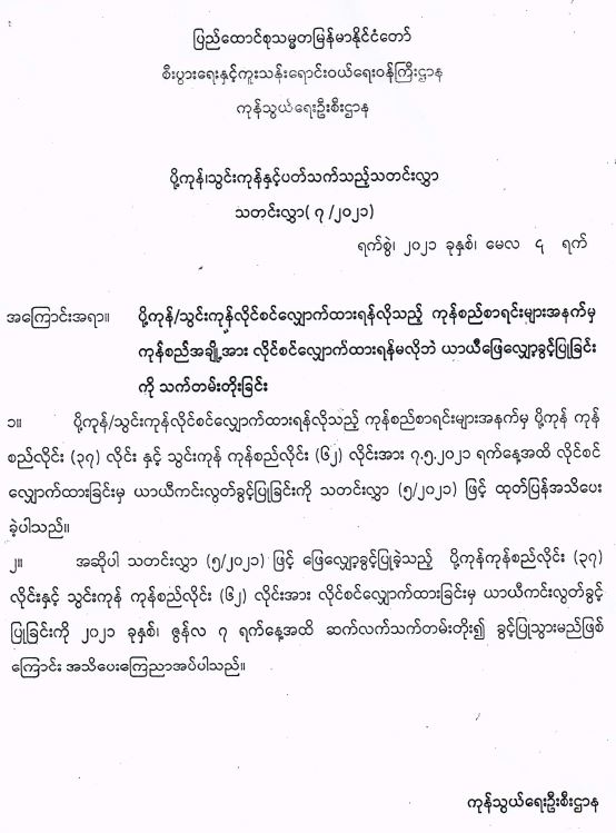 ပြည်ထောင်စုသမ္မတမြန်မာနိုင်ငံတော် စီးပွားရေးနှင့်ကူးသန်းရောင်းဝယ်ရေးဝန်ကြီးဌာန ကုန်သွယ်ရေးဦးစီးဌာန ပို့ကုန်သွင်းကုန်နှင့်ပတ်သက်သည့်သတင်းလွှာ သတင်းလွှာ( ၇ /၂၀၂၁)