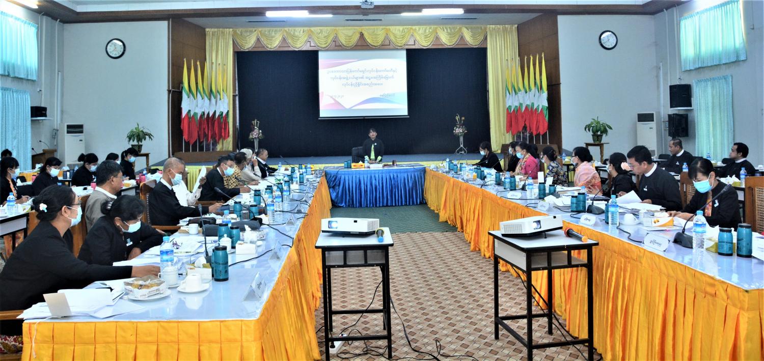 ဥပဒေဘာသာပြန်ကော်မရှင်၏ ဥပဒေဘာသာပြန် လုပ်ငန်းများ အရှိန်အဟုန်မပျက် ဆောင်ရွက်နိုင်စေရန် နိုင်ငံတော်စီမံအုပ်ချုပ်ရေးကောင်စီက မတ် ၂ ရက်တွင် အမိန့် ကြော်ငြာစာအမှတ်၊ ၅၁/၂၀၂၁ ဖြင့် ဥပဒေဘာသာပြန်ကော်မရှင်ကို ပြင်ဆင်ဖွဲ့စည်းခဲ့ပြီး ပြည်ထောင်စုရှေ့နေချုပ်ကို ဥက္ကဋ္ဌအဖြစ် လည်းကောင်း၊ ဥပဒေပညာရှင်များ၊ ဘာသာရပ် ဆိုင်ရာ ကျွမ်းကျင်ပညာရှင်များကို အဖွဲ့ဝင်များအဖြစ် လည်းကောင်း ပါဝင်စေပြီး စုစုပေါင်း ၁၅ ဦးဖြင့် ဖွဲ့စည်းခဲ့ကြောင်း၊ ဥပဒေဘာသာပြန်ကော်မရှင်၏ ဘာသာပြန်ဆိုခြင်းသည် ပြည်ထောင်စု ရှေ့နေချုပ်ရုံး၏ မူလတာဝန်ဖြစ်သော ဥပဒေများ ဘာသာပြန်ဆိုခြင်းလုပ်ငန်း နှင့် သီးခြားဖြစ်ပါကြောင်း၊ ဥပဒေဘာသာပြန်ဆိုခြင်းလုပ်ငန်းသည် အလွန်တရာ နက်နဲသိမ် မွေ့ပြီး ကျယ်ကျယ်ပြန့်ပြန့် စဉ်းစားဆောင်ရွက်ရမည့် ပညာရပ်တစ်ခု ဖြစ်ပါကြောင်း၊ ယခု အစည်းအဝေးတွင် လွှဲပြောင်းနိုင်သော စာချုပ်စာတမ်းများ အက်ဥပဒေ (The Negotiable Instruments Act) နှင့် ကုန်းလမ်းအကောက်ခွန်အက်ဥပဒေ (The Land Customs Act) တို့ကို ဆွေးနွေးအတည် ပြုမည်ဖြစ်ကြောင်း၊ ဘာသာပြန်ဆိုချက် မှန်ကန်စေရေး ဝိုင်းဝန်းဆွေးနွေး အကြံပြုပေးစေလိုကြောင်း ပြောကြားသည်။