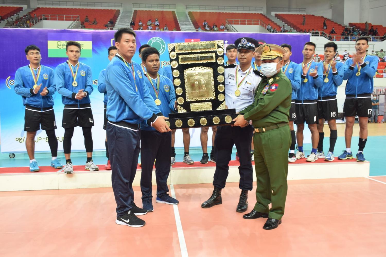 ထိုနောက် ပြည်ထောင်စုဝန်ကြီး ဒုတိယဗိုလ်ချုပ်ကြီး စိုးထွဋ်က ပထမတံခွန်စိုက်ဒိုင်းဆုရရှိသော မြန်မာနိုင်ငံရဲတပ်ဖွဲ့(က) အမျိုးသားအသင်းအား တံခွန်စိုက်ဒိုင်းဆု၊ တစ်ဦးချင်း ဆုတံဆိပ်များနှင့် ငွေသားဆုများ ပေးအပ်ချီးမြှင့်ခဲ့ပြီး ကျန်းမာရေးနှင့် အားကစားဝန်ကြီးဌာနမှ ဒိုင် ၇ ဦးနှင့် ဘော်လီဘောကွင်း တာဝန်ခံတို့ကို ဂုဏ်ပြုလက်ဆောင်များ ချီးမြှင့်သည်။
