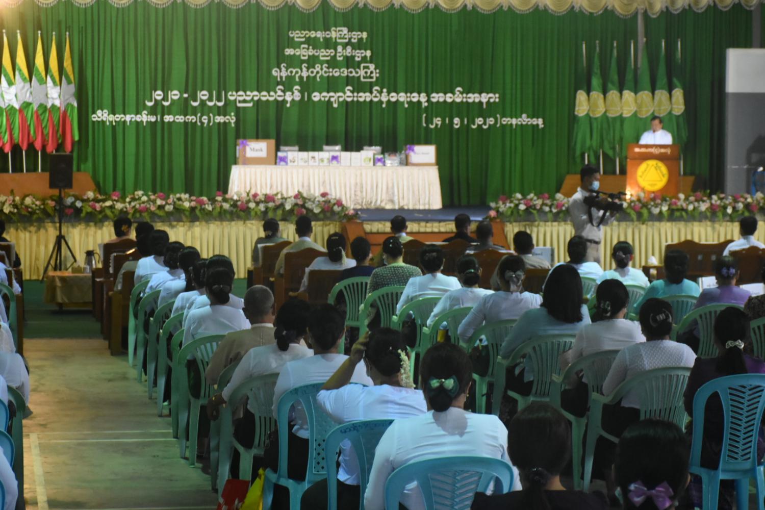 ရန်ကုန်တိုင်းဒေသကြီးအတွင်း အရှေ့ပိုင်းခရိုင် သင်္ဃန်းကျွန်းမြို့နယ်၊ သုဝဏ္ဏ အမှတ်(၁) အခြေခံ ပညာအထက်တန်းကျောင်း၊ တောင်ပိုင်းခရိုင်၊ သန်လျင်မြို့နယ်၊ အမှတ် (၁) အခြေခံပညာ အထက် တန်းကျောင်း၊ မြောက်ပိုင်း ခရိုင်၊ အင်းစိန်မြို့နယ်အမှတ် (၁) အခြေခံပညာ အထက်တန်းကျောင်း များတွင် ကျောင်းအပ်နှံရေး နေ့အခမ်းအနားများ ကျင်းပခဲ့ပြီး ခရိုင်စီမံအုပ်ချုပ်ရေးအဖွဲ့ ဥက္ကဋ္ဌ များနှင့် ခရိုင်ပညာရေးမှူးများက တက်ရောက်ဖွင့်လှစ်ပေးကြောင်း သိရသည်။