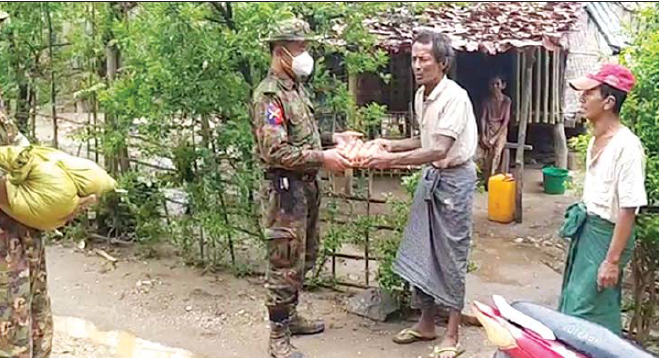 ထိုသို့ဆောင်ရွက်နေမှုများကို တိုင်းစစ်ဌာနချုပ်မှ တာဝန်ရှိသူများက အဆိုပါ ကျေးရွာများသို့ သွားရောက်ကြည့်ရှုအားပေးကာ ညောင်စာရေးဘုန်းတော်ကြီးကျောင်း၊ ကျောင်း၊ ကျောင်းထိုင်ဆရာတော်အား ဆွမ်းဆန်တော်နှင့် စားသောက်ဖွယ်ရာများ ဆက်ကပ်လှူဒါန်းခဲ့သည်။ ထို့နောက် လေဘေးသင့် အိမ်ထောင်စု(၁၉)စုအတွက် ဆန်နှင့် စားသောက်ဖွယ်ရာများ ထောက်ပံ့ပေးအပ်ခဲ့ကြောင်း သတင်းရရှိသည်။