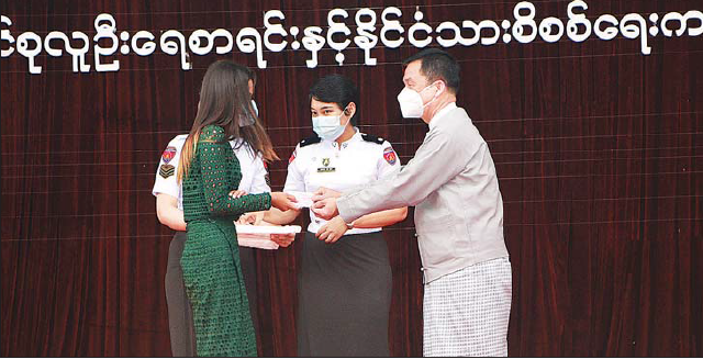 ထိုမှတစ်ဆင့် ပြည်ထောင်စုဝန်ကြီးသည် ရွှေပြည်သာမြို့နယ်၊ မြို့နယ်ခန်းမ၌ ကျင်းပသည့် ဒေသခံပြည်သူများအား ပန်းခင်းစီမံချက်ဖြင့် ဆောင်ရွက်ပြီးဖြစ်သော အိမ်ထောင်စုလူဦးရေ စာရင်းနှင့် နိုင်ငံသားစိစစ်ရေး ကတ်ပြား ပေးအပ်ပွဲအခမ်းအနား သို့ တက်ရောက်အားပေးသည်။