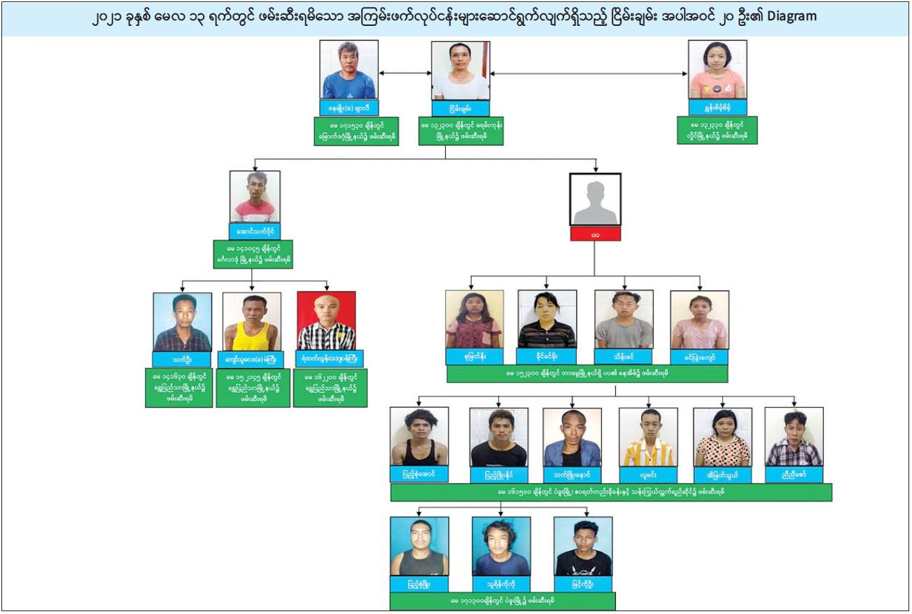 ပြည့်ဖြိုးနိုင်(ခ)မာဖီးယား၏ ထွက်ဆိုချက်အရ ပြည့်စုံဖြိုး၊ ၁၉ နှစ်၊(ဘ) ဦးရဲလင်းကျော်အား မေလ ၁၇ ရက်တွင် ပဲခူးမြို့၊ ရပ်ကွက်(၂)၊ အေသင်စားသောက် ဆိုင်၌လည်းကောင်း၊ တိုင်းရင်းသားလက်နက်ကိုင် အဖွဲ့အစည်းထံတွင် သင်တန်းတက်ရောက် ခဲ့သူများဖြစ်ကြသည့် သူရိန်ကိုကို၊ ၂၃ နှစ်၊ (ဘ) ဦးအောင်ကျော်စိုးနှင့် မြင့်ကိုဦး၊ ၂၃ နှစ်၊ (ဘ)ဦးမောင်အေးအား ပဲခူးမြို့၊ ကျွန်းသာရပ်ကွက်၊ အောင်ရတနာ ဘုန်းကြီးကျောင်း၌ လည်းကောင်း ထပ်မံဖမ်းဆီးရမိခဲ့သည်။