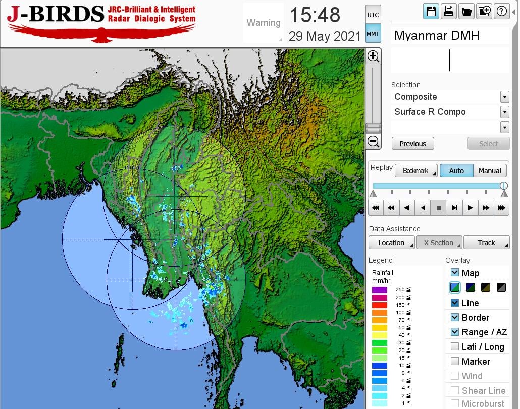 မိုးလေဝသနှင့် ဇလဗေဒညွှန်ကြားမှုဦးစီးဌာနမှ (၂၀၂၁ ခုနှစ်၊ မေလ (၂၉)ရက်နေ့ ညနေ(၄:၀၀) နာရီအချိန် ထုတ်ပြန်ချက်) ဘင်္ဂလားပင်လယ်အော် အခြေအနေ။ ကပ္ပလီပင်လယ်ပြင်၊ ဘင်္ဂလားပင်လယ်အော် တောင်ပိုင်းနှင့် အရှေ့အလယ်ပိုင်းတို့တွင် မုတ်သုံလေ အားအသင့်အတင့်မှ အားကောင်းနေပြီး၊ ကျန်ဘင်္ဂလားပင်လယ်အော်တွင် တိမ်အနည်းငယ် ဖြစ်ထွန်းနေပါသည်။ မနက်ဖြန်နံနက်အထိ ခန့်မှန်းချက်။ တနင်္သာရီတိုင်းဒေသကြီး၊ ကရင်ပြည်နယ်နှင့် မွန်ပြည်နယ် တို့တွင် နေရာအနှံ့အပြား၊ ပဲခူးတိုင်းဒေသကြီး၊ ရန်ကုန်တိုင်းဒေသကြီး၊ ဧရာဝတီတိုင်းဒေသကြီး၊ ရှမ်းပြည်နယ်(တောင်ပိုင်းနှင့် အရှေ့ပိုင်း)နှင့် ကယားပြည်နယ်တို့တွင် နေရာစိပ်စိပ်၊ နေပြည်တော်၊ မန္တလေးတိုင်းဒေသကြီး၊ ကချင်ပြည်နယ်နှင့် ချင်းပြည်နယ်တို့တွင် နေရာကျဲကျဲ နှင့် ကျန်တိုင်းဒေသကြီးနှင့် ပြည်နယ်တို့တွင် နေရာကွက်ကျား မိုးထစ်ချုန်းရွာပြီး၊ တနင်္သာရီ တိုင်းဒေသကြီးတွင် နေရာကွက်၍ မိုးကြီးနိုင်ပါသည်။ ရွာရန်ရာနှုန်း(၈၀) ဖြစ်ပါသည်။ မြန်မာ့ပင်လယ်ပြင်။ မြန်မာ့ကမ်းရိုးတန်း တစ်လျှောက်နှင့် ကမ်းလွန်ပင်လယ်ပြင်တို့တွင် တစ်ခါတစ်ရံ မိုးသက်လေပြင်းများကျရောက်ပြီး လှိုင်းအသင့်အတင့်မှ လှိုင်းကြီးနိုင်ပါသည်။ မိုးသက်လေပြင်းကျစဉ် ရေပြင်/မြေပြင်လေသည် တစ်နာရီလျှင် မိုင်(၃၀)မှ (၃၅)မိုင်အထိ တိုက်ခတ်နိုင်ပါသည်။ လှိုင်းအမြင့်မှာ မြန်မာ့ကမ်းရိုးတန်း တစ်လျှောက်နှင့် ကမ်းလွန် ပင်လယ်ပြင်တို့တွင် (၆)ပေမှ (၉)ပေခန့်ရှိနိုင်ပါသည်။ နောက်(၂)ရက်အတွက် ခန့်မှန်းချက်။ အနောက်တောင်မုတ်သုံလေသည် မြန်မာနိုင်ငံ အလယ်ပိုင်း ဒေသများသို့ ဝင်ရောက်နိုင်ပါသည်။ နေပြည်တော်နှင့် အနီးတစ်ဝိုက်အတွက် မနက်ဖြန်နံနက်အထိ ခန့်မှန်းချက်။ နေရာကွက်ကျား မိုးထစ်ချုန်းရွာမည်။ ရွာရန်ရာနှုန်း(၈၀) ဖြစ်ပါသည်။ ရန်ကုန်မြို့နှင့် အနီးတစ်ဝိုက်အတွက် မနက်ဖြန်နံနက်အထိ ခန့်မှန်းချက်။ မိုးတစ်ကြိမ်၊ နှစ်ကြိမ် ထစ်ချုန်းရွာမည်။ ရွာရန်ရာနှုန်းပြည့် ဖြစ်ပါသည်။ မန္တလေးမြို့နှင့် အနီးတစ်ဝိုက်အတွက် မနက်ဖြန်နံနက်အထိ ခန့်မှန်းချက်။ နေရာကွက်ကျား မိုးထစ်ချုန်းရွာနိုင်ပါသည်။ ရွာရန်ရာနှုန်း(၆၀) ဖြစ်ပါသည်။ #မိုးလေဝသနှင့် ဇလဗေဒညွှန်ကြားမှုဦးစီးဌာန