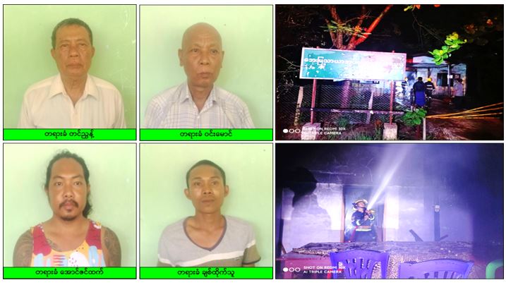 ပဲခူးတိုင်းဒေသကြီး အုတ်ဖိုမြို့နယ်ရှိ ရပ်ကွက်စီမံအုပ်ချုပ်ရေးအဖွဲ့ရုံးအား မီးရှို့ဖျက်ဆီးမှု ကျူးလွန်ခဲ့သည့် ရပ်ကွက်အုပ်ချုပ်ရေးမှူးအဟောင်းပါ အမျိုးသား ၄ ဦးအား ဖော်ထုတ် ဖမ်းဆီးအရေးယူ