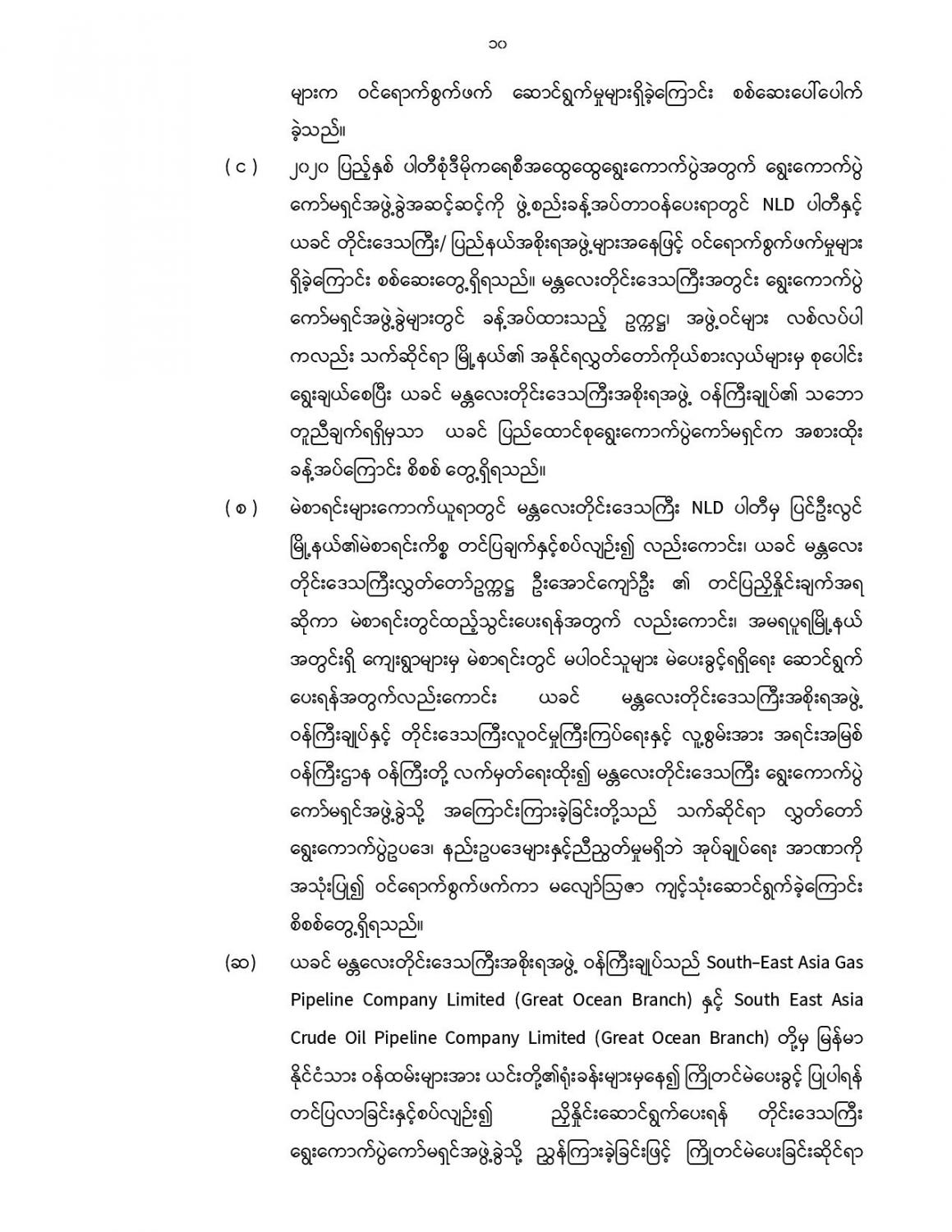 ဝန်ကြီးဌာန ကြေညာချက်များ