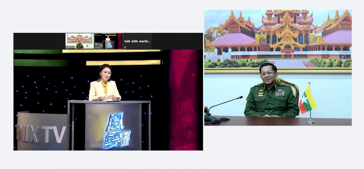 နိုင်ငံတော်စီမံအုပ်ချုပ်‌ရေးကောင်စီဥက္ကဌ၊ တပ်မတော်ကာကွယ်ရေး ဦးစီးချုပ် ဗိုလ်ချုပ်မှူးကြီး မင်းအောင်လှိုင် အား တရုတ်ပြည်သူ့သမ္မတနိုင်ငံ၊ Phoenix ရုပ်သံမီဒီယာမှ တွေ့ဆုံမေးမြန်းခြင်း