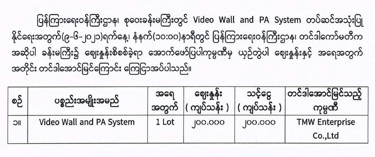 ဦးစီးဌာနနှင့် လုပ်ငန်းများ၏ ကြေညာချက်များ