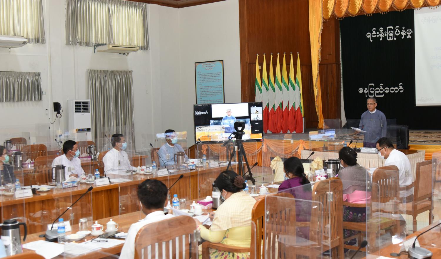 နေပြည်တော် ဇွန် ၉ ရုရှား- မြန်မာအစိုးရအချင်းချင်း ကုန်သွယ်ရေးနှင့် စီးပွားရေးပူးပေါင်း ဆောင်ရွက်ရေး ပူးတွဲကော်မရှင်အစည်းအဝေး ကျင်းပနိုင်ရေးအတွက် အကြိုညှိနှိုင်းအစည်းအဝေးကို ယနေ့ မွန်းလွဲပိုင်းတွင် နေပြည်တော် ရုံးအမှတ် (၁) အစည်းအဝေးခန်းမ၌ ကျင်းပသည်။ အစည်းအဝေးသို့ မြန်မာဘက်မှ ရုရှား-မြန်မာ အစိုးရအချင်းချင်း ကုန်သွယ်ရေးနှင့် စီးပွားရေးပူးပေါင်းဆောင်ရွက်ရေး ပူးတွဲကော်မရှင် ဥက္ကဋ္ဌ ရင်းနှီးမြှုပ်နှံမှုနှင့် နိုင်ငံခြားစီးပွား ဆက်သွယ်ရေးဝန်ကြီးဌာန၊ ပြည်ထောင်စုဝန်ကြီး ဦးအောင်နိုင်ဦးနှင့် ပူးတွဲကော်မရှင်အဖွဲ့ဝင်များ တက်ရောက်ကြသည်။ ဦးစွာ ပူးတွဲကော်မရှင် ဥက္ကဋ္ဌ ရင်းနှီးမြှုပ်နှံမှုနှင့် နိုင်ငံခြားစီးပွားဆက်သွယ်ရေးဝန်ကြီးဌာန၊ ပြည်ထောင်စုဝန်ကြီး ဦးအောင်နိုင်ဦး က အဖွင့်အမှာစကားပြောကြားခဲ့ပြီး ပူးတွဲကော်မရှင်၏ အတွင်းရေးမှူးဖြစ်သူ ရင်းနှီးမြှုပ်နှံမှုနှင့် နိုင်ငံခြားစီးပွားဆက်သွယ်ရေးဝန်ကြီးဌာန၊ ပြည်ထောင်စုဝန်ကြီးရုံး၊ ညွှန်ကြားရေးမှူးချုပ် ဒေါက်တာဝါဝါမောင် က ရုရှား-မြန်မာ နှစ်နိုင်ငံအကြား စီးပွားရေးပူးပေါင်းဆောင်ရွက်မှု ဖွံ့ဖြိုးတိုးတက်ရေးမဟာဗျူဟာ ရေးဆွဲထား ခြင်းနှင့် စပ်လျဉ်း၍ ရှင်းလင်းတင်ပြသည်။ ယင်းနောက် အစည်းအဝေးသို့ တက်ရောက်လာ ကြသူများက သက်ဆိုင်ရာဌာနအလိုက် ပူးပေါင်းဆောင်ရွက်ရေး ကိစ္စရပ်များနှင့်စပ်လျဉ်း၍ ဆွေးနွေးခဲ့ကြသည်။ အစည်းအဝေးတွင် ရုရှား-မြန်မာ နှစ်နိုင်ငံအချင်းချင်း ကုန်သွယ်ရေးနှင့် စီးပွားရေး ပူးပေါင်းဆောင်ရွက်ရေး ပူးတွဲကော်မရှင် အစည်းအဝေးကျင်းပနိုင်ရေးနှင့် စပ်လျဉ်း၍လည်းကောင်း၊ ပုဂ္ဂလိကကဏ္ဍစီးပွားရေး တွေ့ဆုံညှိနှိုင်းမှုအစီအစဉ် ကျင်းပရေးကိစ္စရပ်များကို လည်းကောင်း၊ နှစ်နိုင်ငံအကြား စီးပွားရေးပူးပေါင်းဆောင်ရွက်မှုဖွံ့ဖြိုးတိုးတက်ရေး မဟာဗျူဟာရေးဆွဲမှုဆိုင်ရာ လုပ်ငန်းစဉ်များနှင့်စပ်လျဉ်း၍လည်းကောင်း ဆွေးနွေးသည်။ (သတင်းစဉ်)